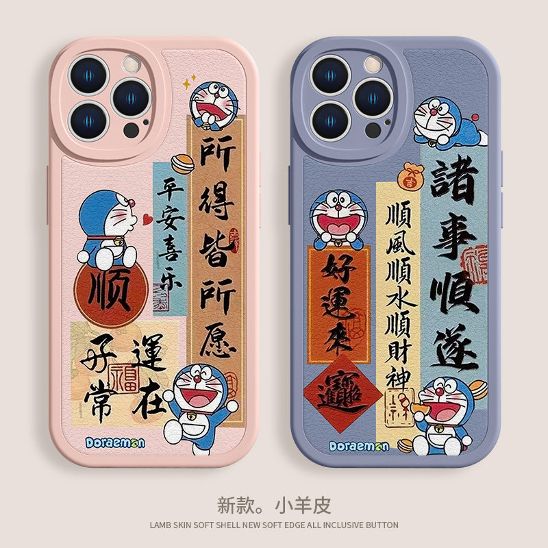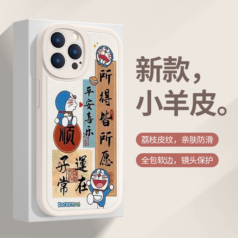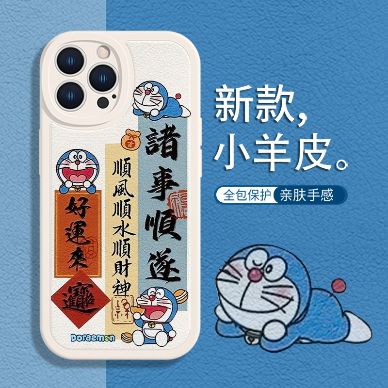 诸事顺遂适用苹果17/16手机壳iPhone15Promax哆啦A梦14平安喜乐12mini文字13promax书法11新款羊皮xr软xsmax