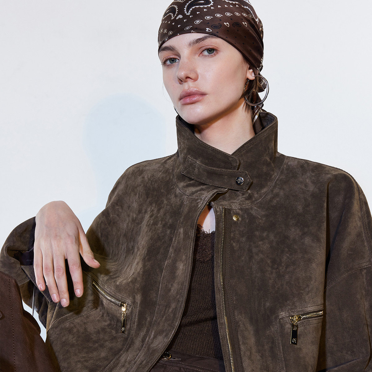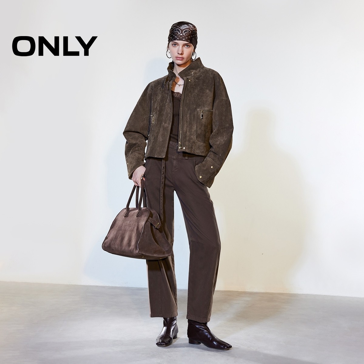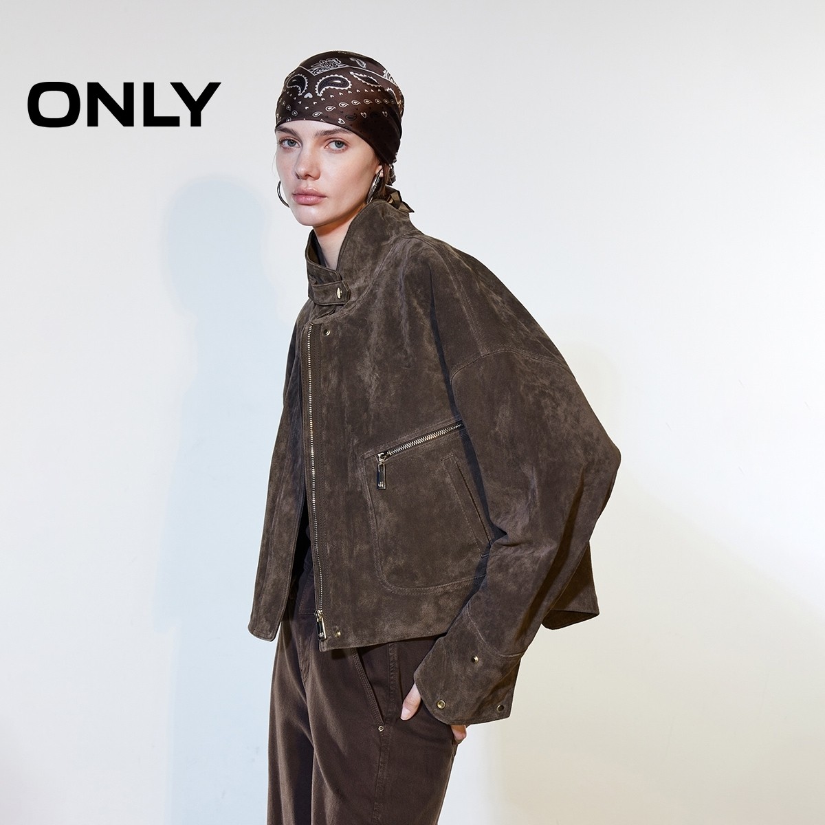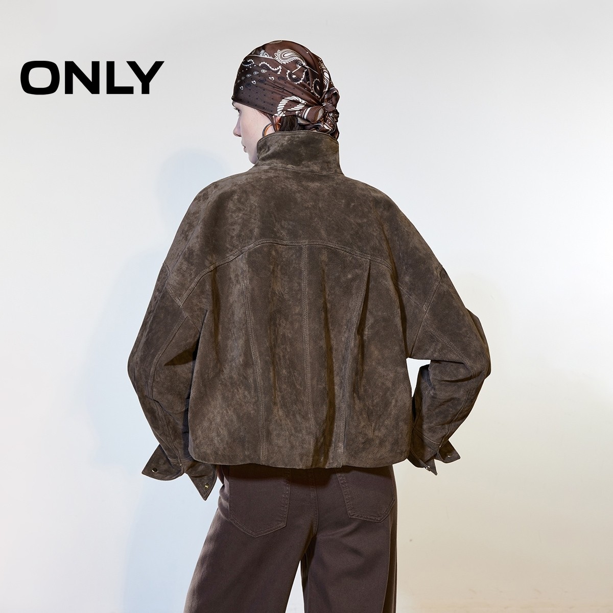 ONLY2026春季新款挺括立领立体实用大容量口袋宽松皮衣外套女