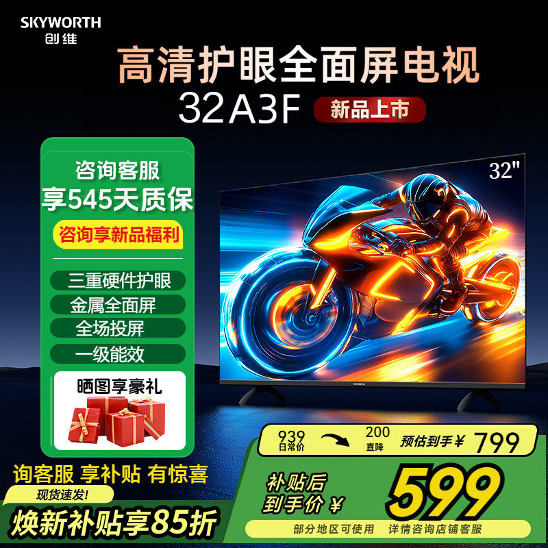 创维32A3F 32英寸电视机护眼卧室WiFi平板家用多功能彩电液晶电视