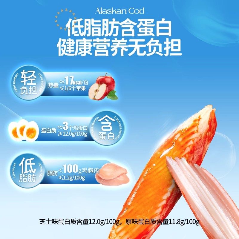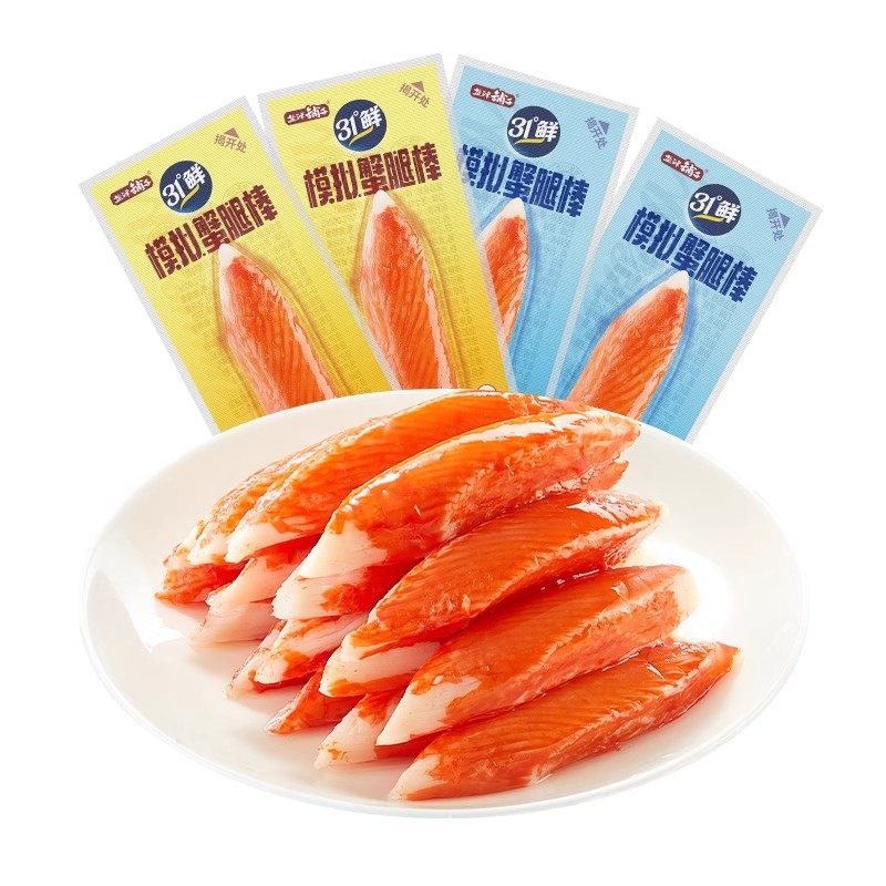 盐津铺子松叶手撕蟹柳棒蟹肉棒模拟蟹腿棒真蟹肉零食低脂肪芝士