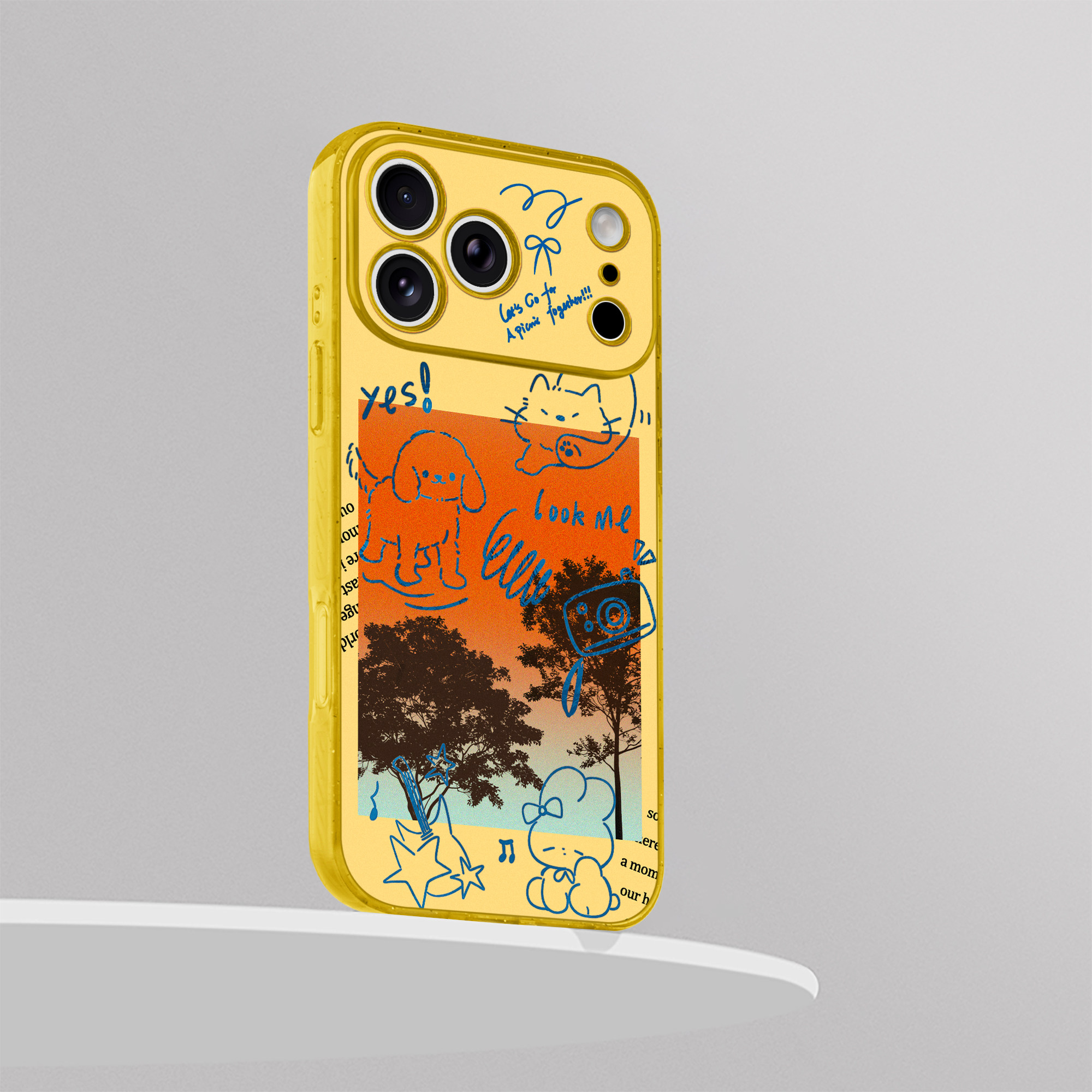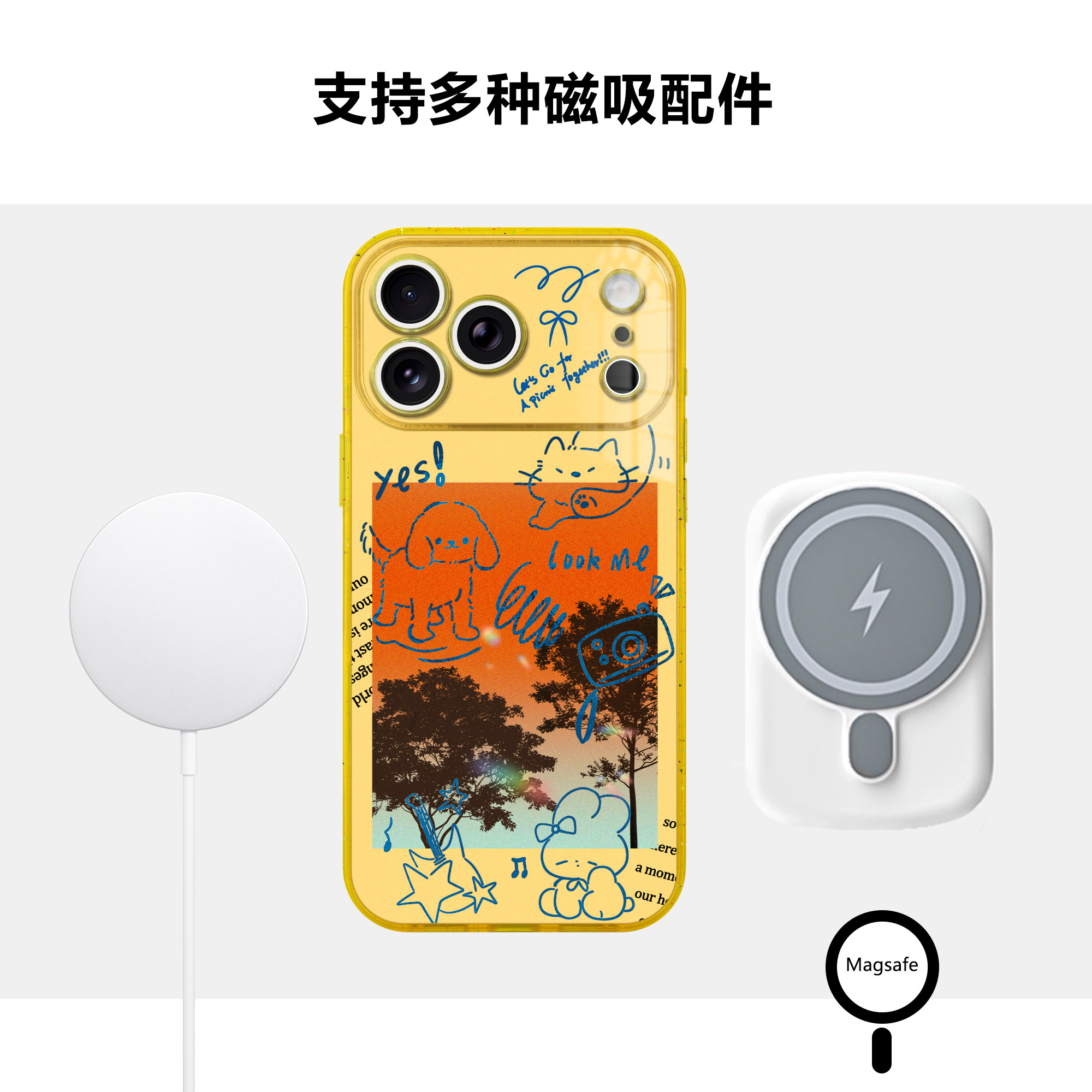 benefit艺术油画线条小动物适用于iphone17promax苹果16PRO晶盾磁吸手机壳15新款13套14冰川纹12防摔彩色边框