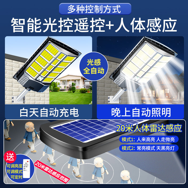 2025新款太阳能路灯户外照明农村家用庭院人体感应LED超亮大功率