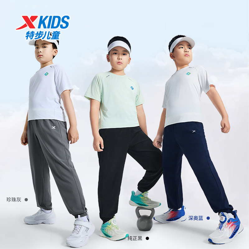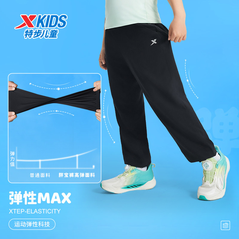 特步童装儿童运动裤夏季新款男童速干长裤胖宝宽松弹力裤子束脚裤