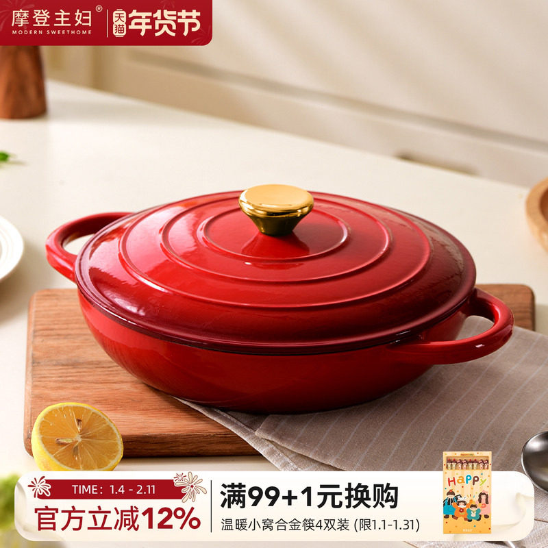 摩登主妇珐琅海鲜锅家用不粘肉蟹煲焖炖锅砂锅燃气专用平底铸铁锅