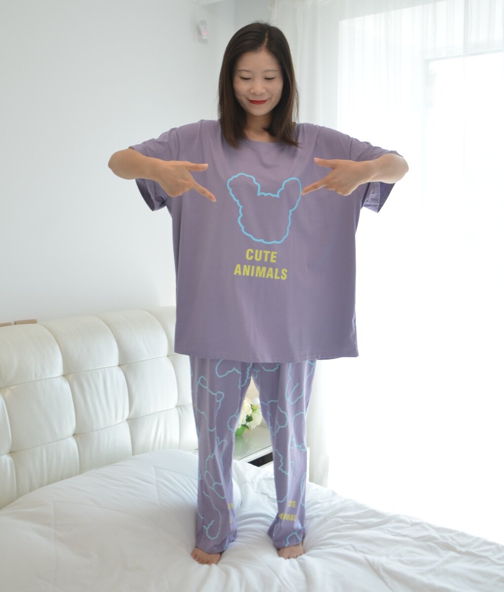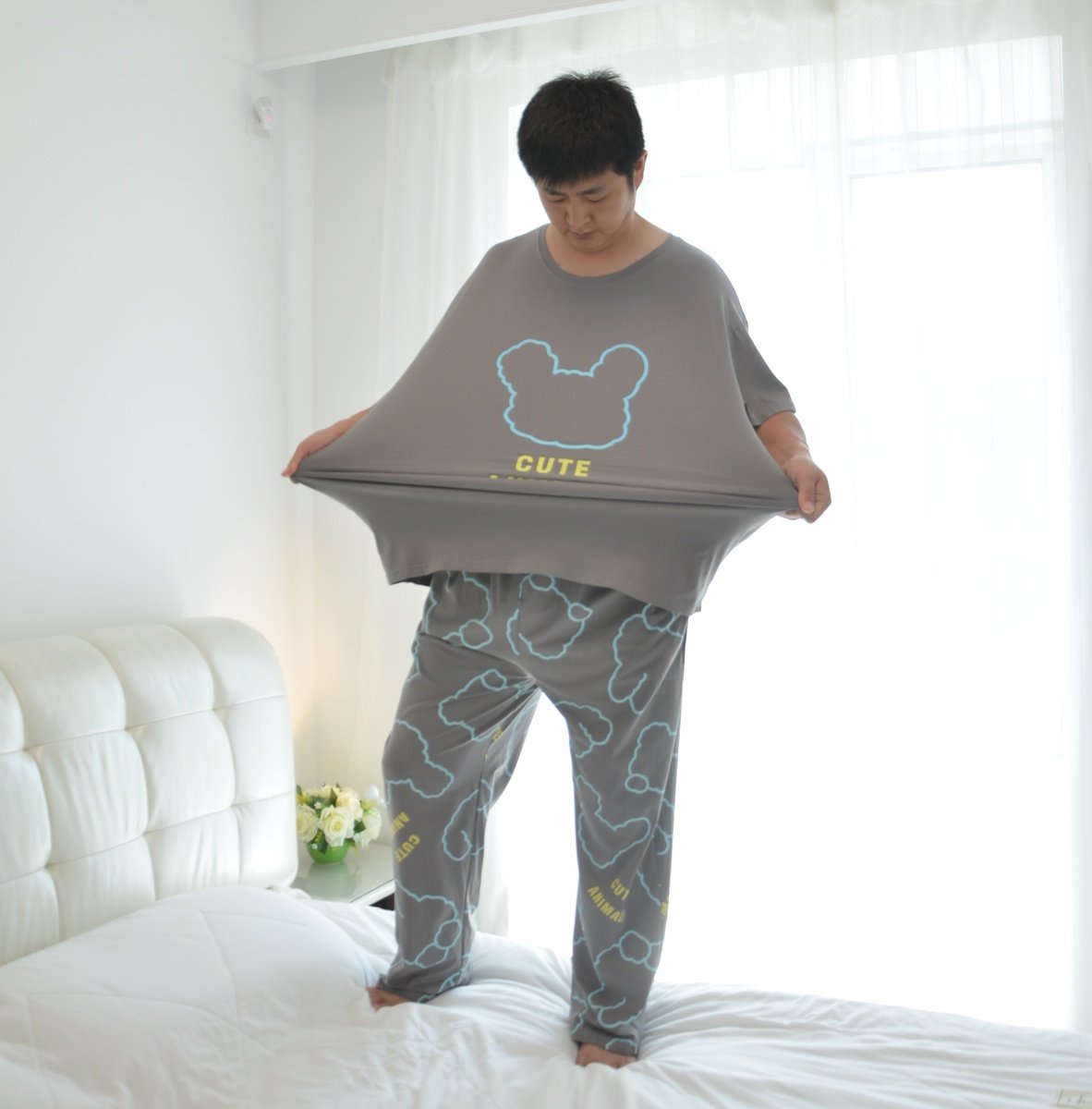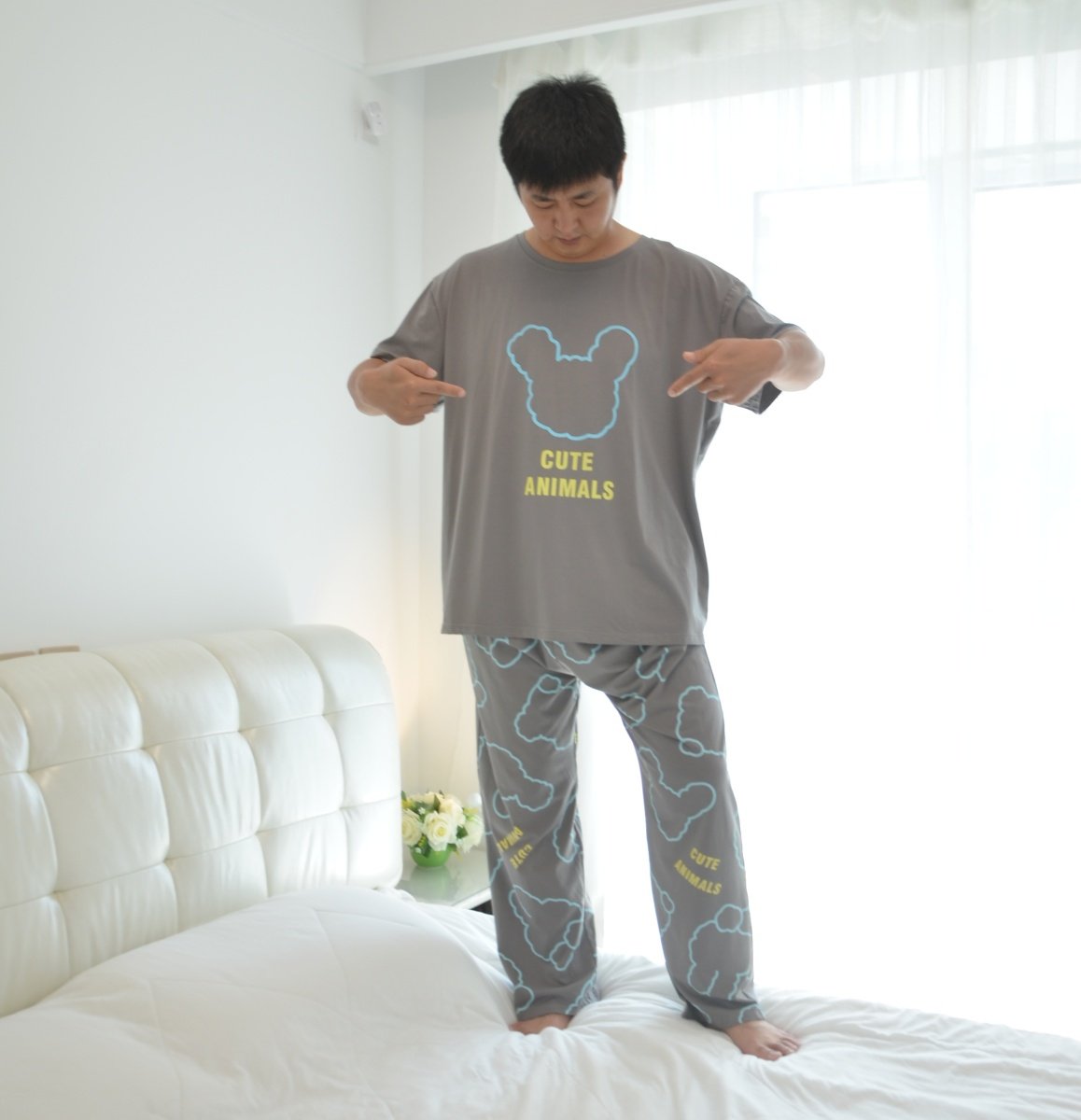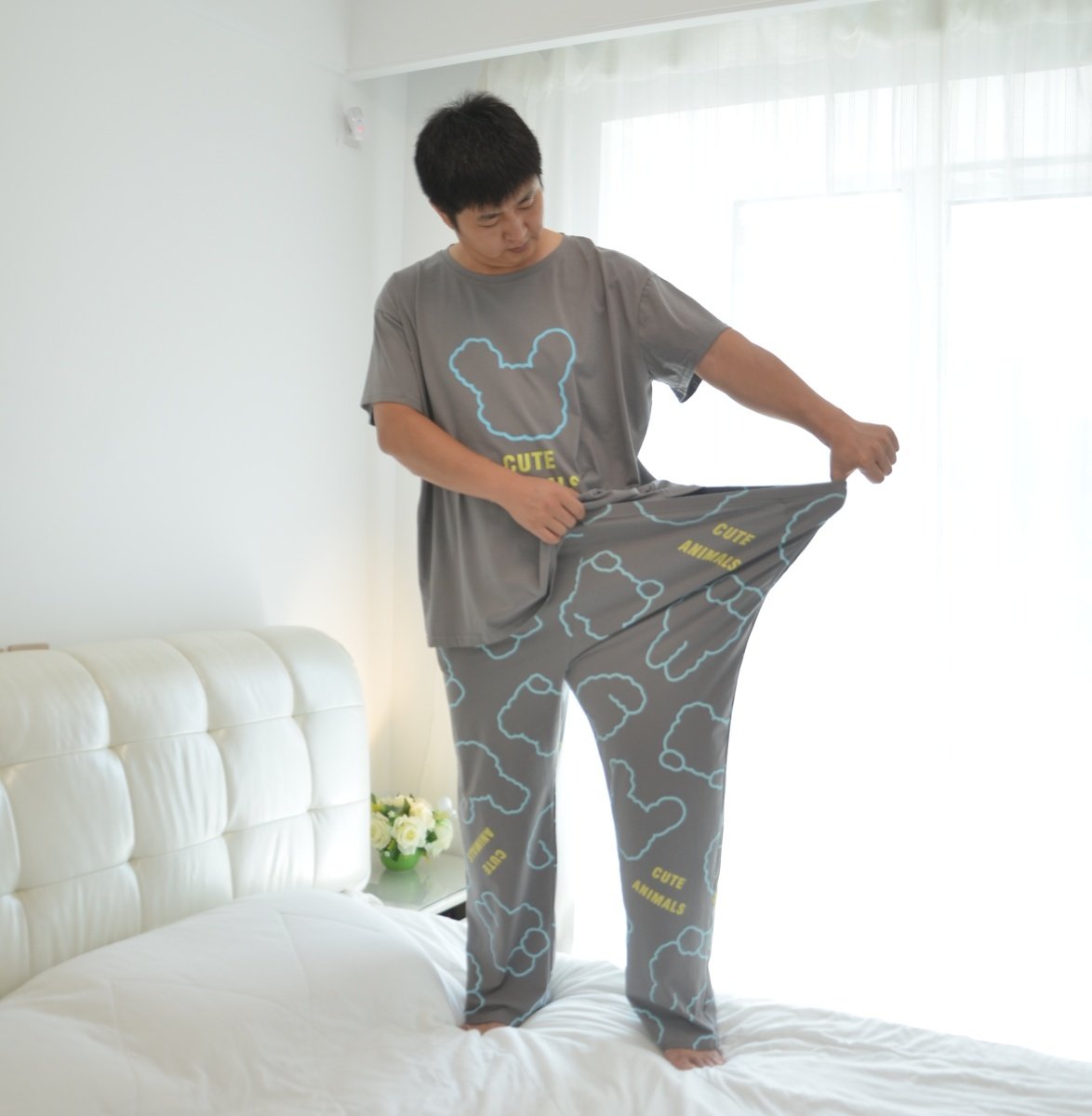 200斤加肥大码短袖长裤睡衣男女情侣夏季针织纯棉卡通休闲家居服