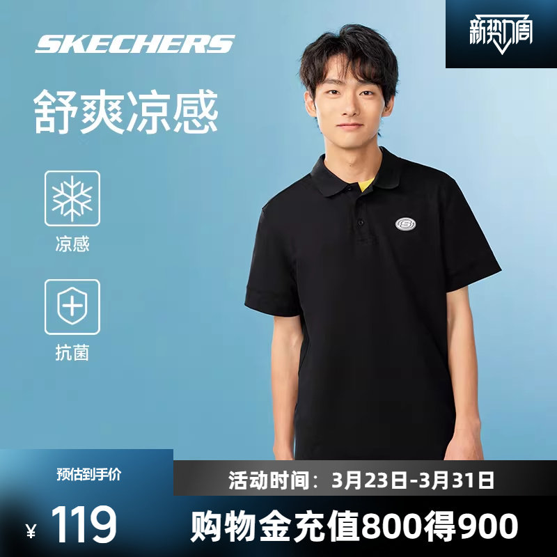斯凯奇POLO衫男士休闲透气落肩凉感速干T恤短袖舒适百搭轻盈
