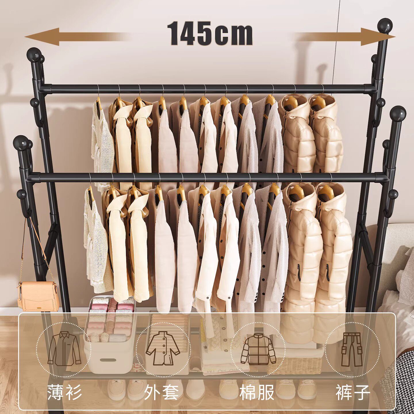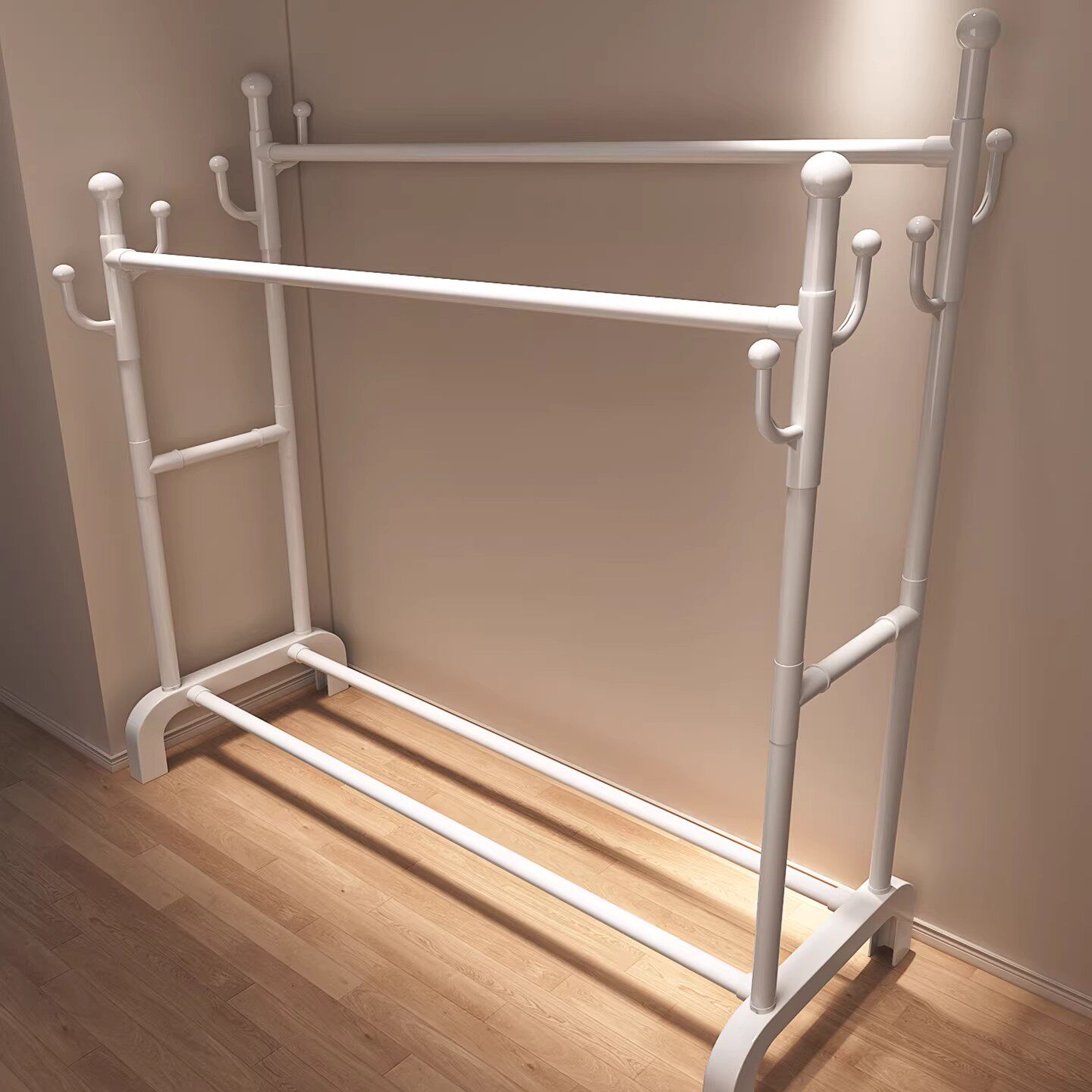 衣帽架多功能可移动挂衣架落地卧室家用房间室内双杆晾晒衣服架子