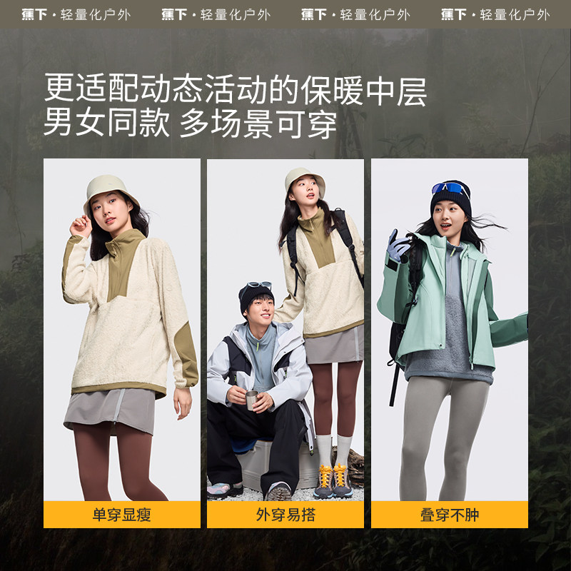 蕉下双开拉链摇粒绒开衫女新款保暖上衣外套内胆短款修身打底衫