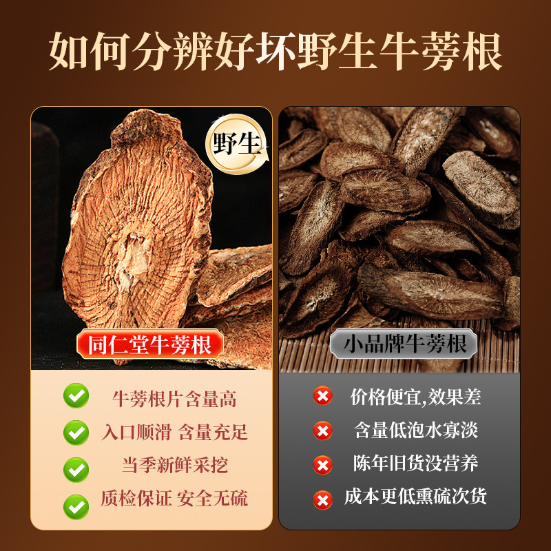 北京同仁堂牛蒡茶旗舰店正品牛蒡根新鲜牛旁磅膀茶特黄金牛蒡茶级