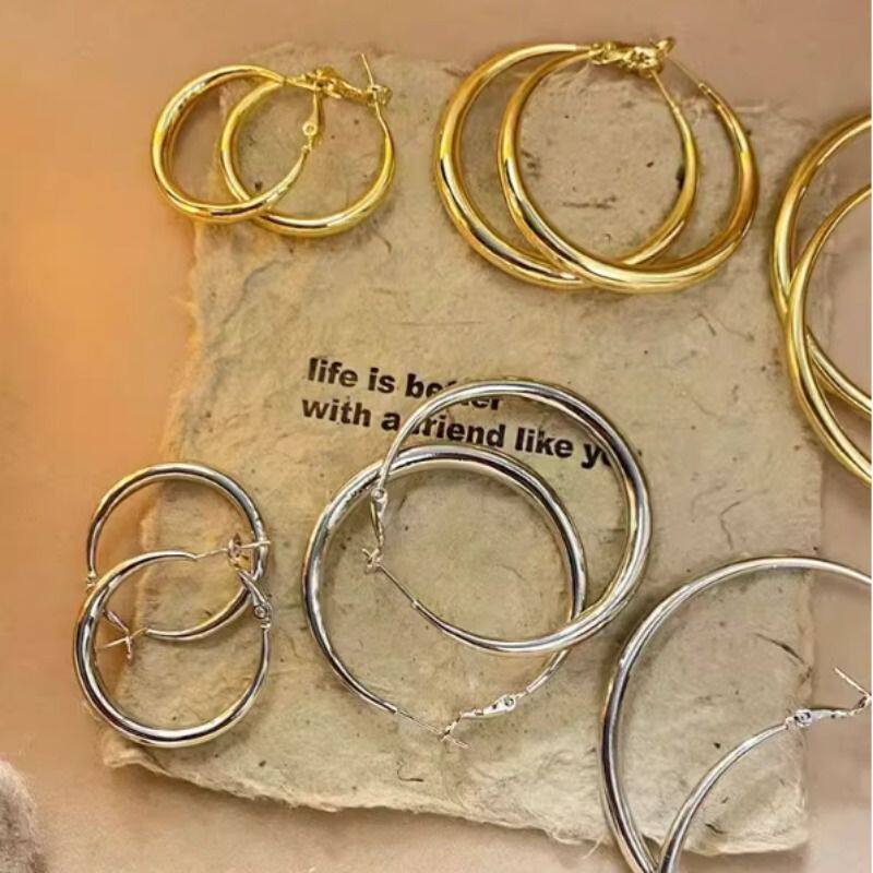 银色简约高级感素圈耳环女2025新款耳圈气质耳饰轻奢耳钉圈圈耳扣