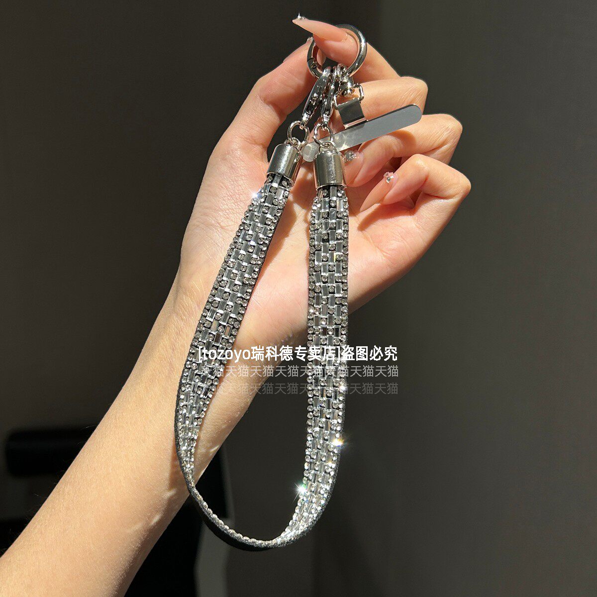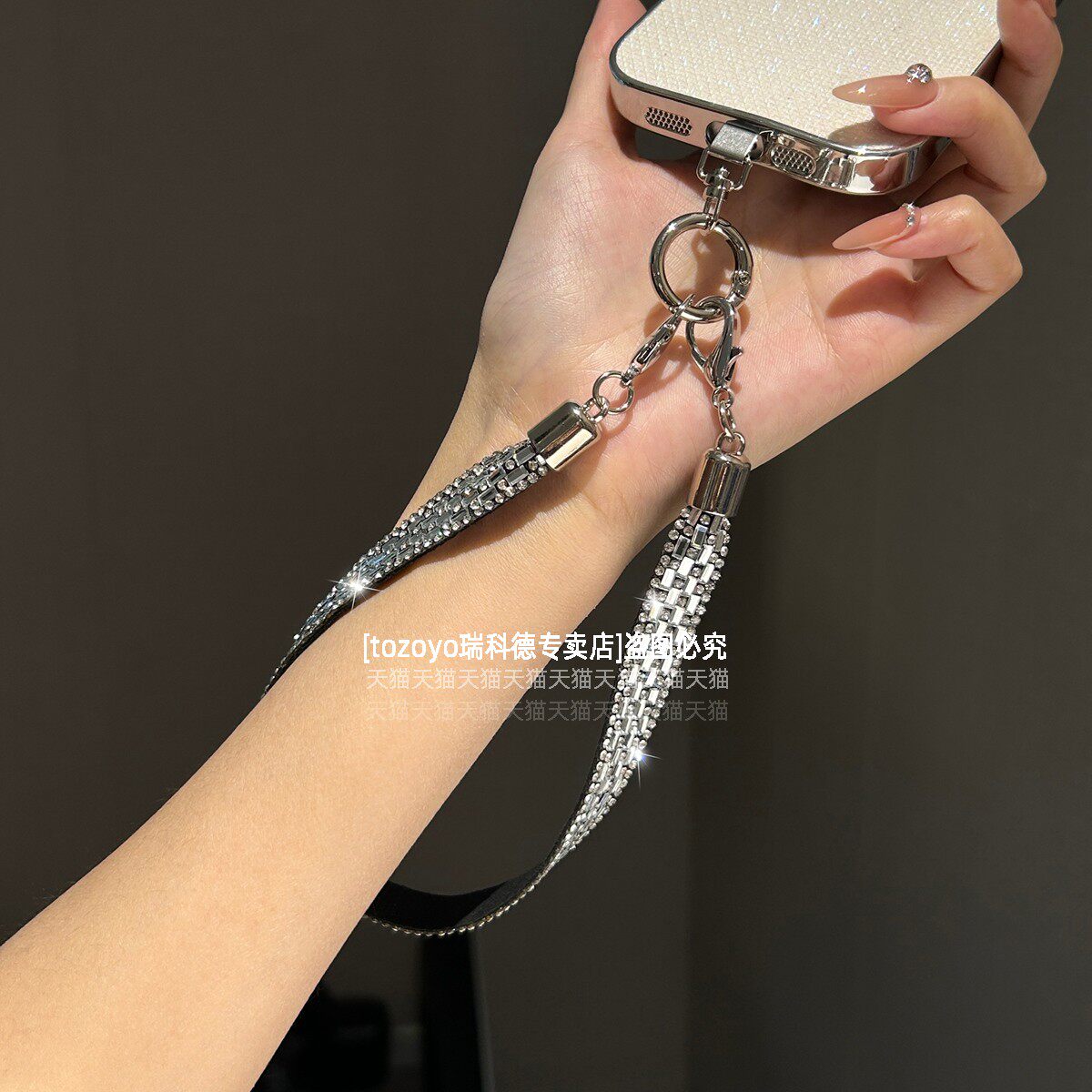 绝美手机链挂绳挂件奢华满钻植绒宽带手绳精致闪钻手腕款链条防盗绳耐用相机包包挂饰爆闪水钻手链挂链腕带壳