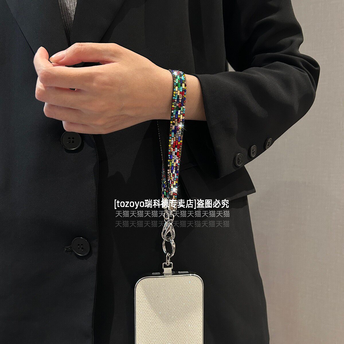 奢华高级感水晶手提链条手腕短挂绳带夹片壳钥匙扣包包挂件潮
