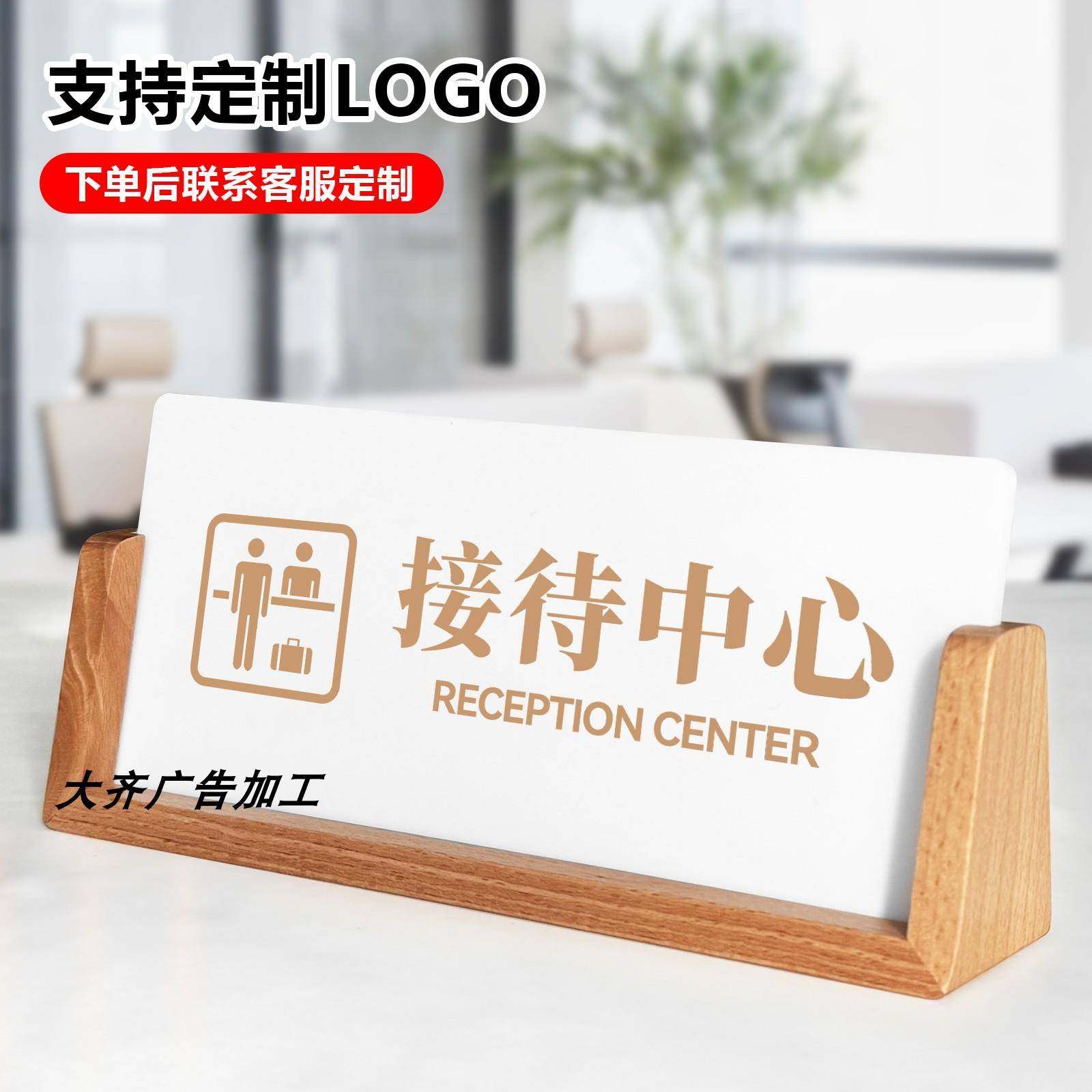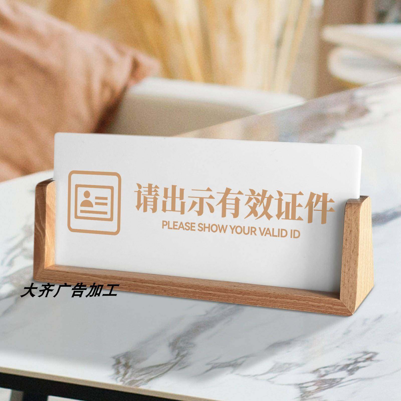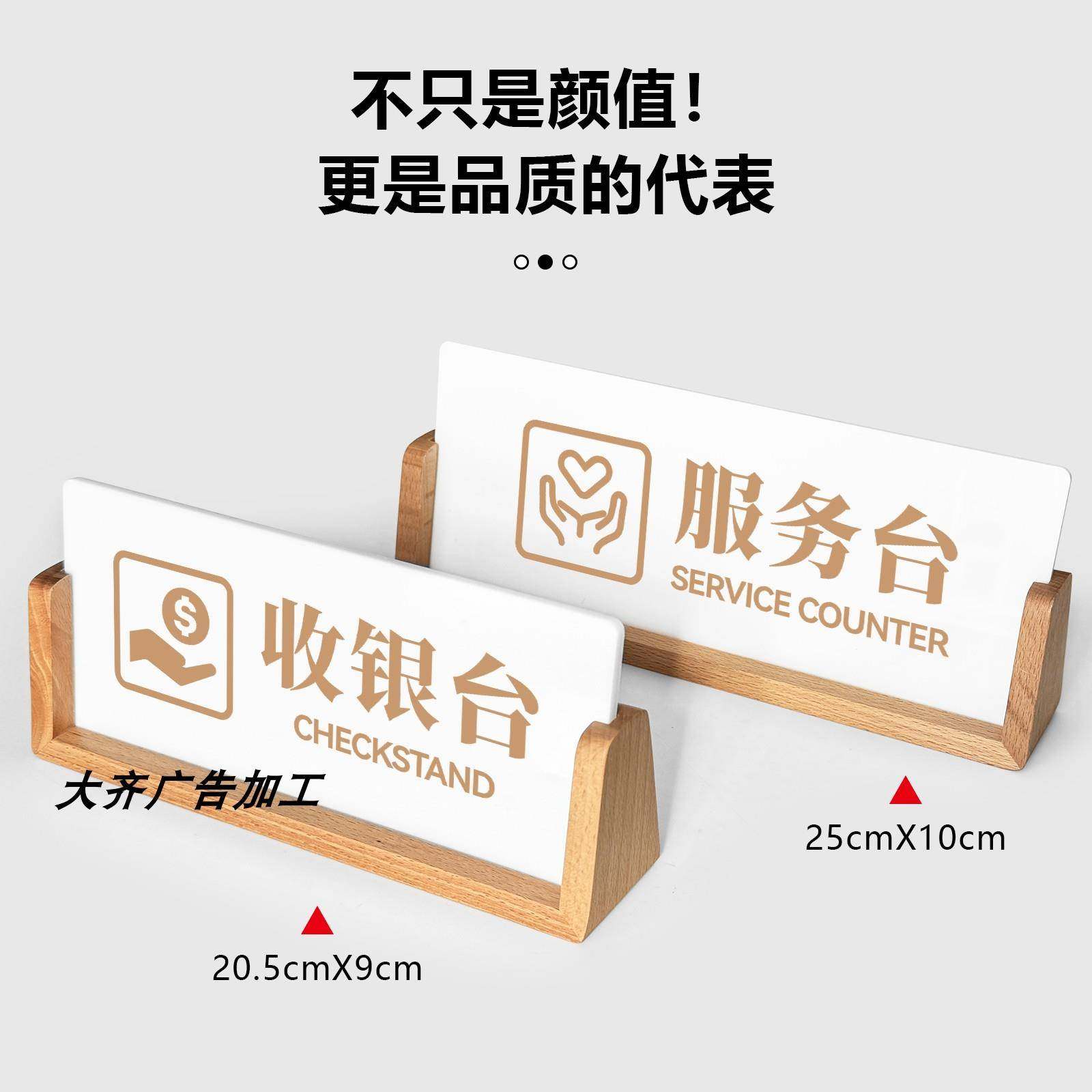 定制木质前台接待桌牌宾馆酒店服务收银柜台温馨提示标识牌三角桌牌