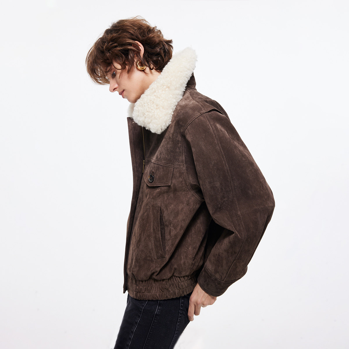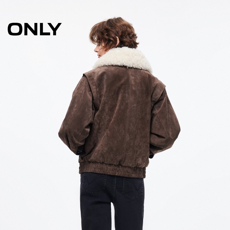 ONLY2025冬季新款胸前兜盖装饰可拆卸领挺阔有型落肩宽松皮衣女
