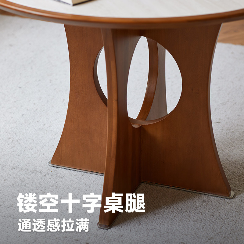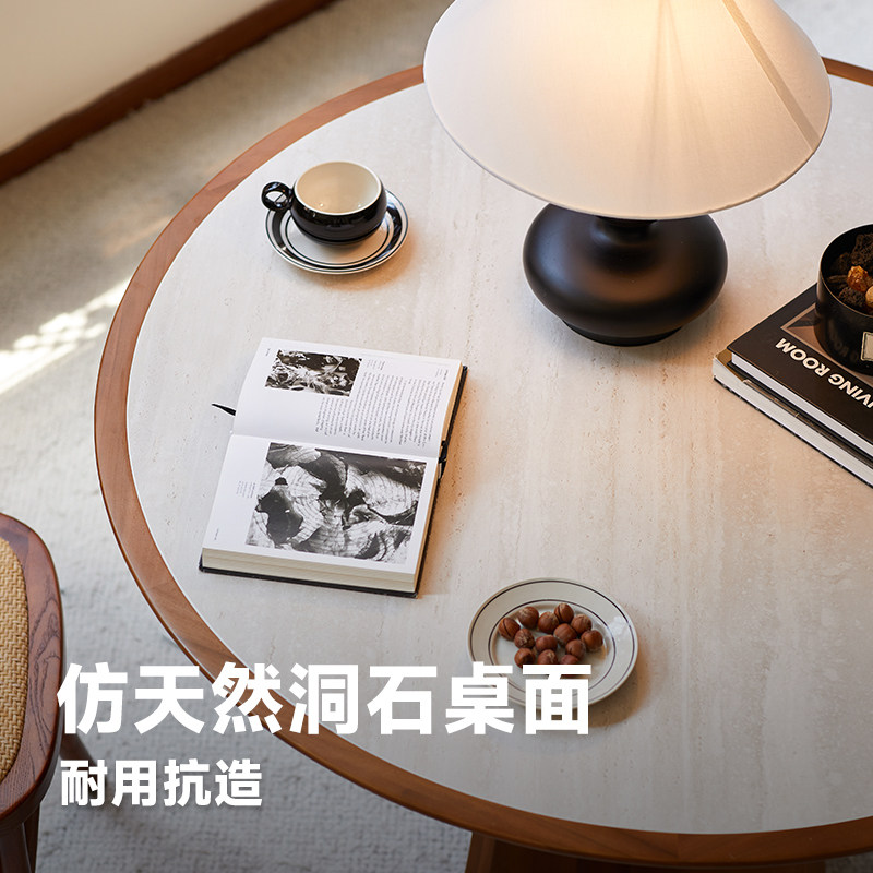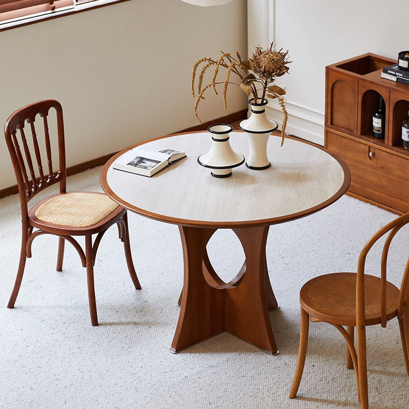 饭桌客厅2024新款小户型洞石餐桌复古网红岩板圆桌客厅实木餐桌子