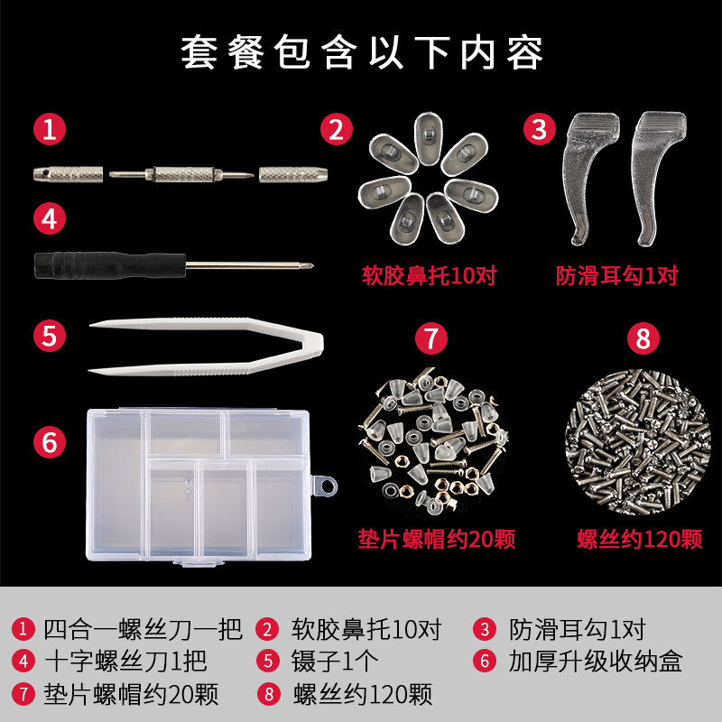 眼镜配件零件包维修螺丝套装近视眼镜鼻托镜框镜腿零配件螺丝套装