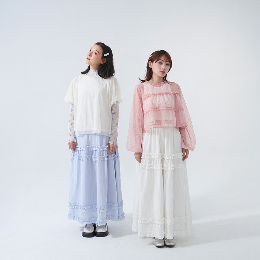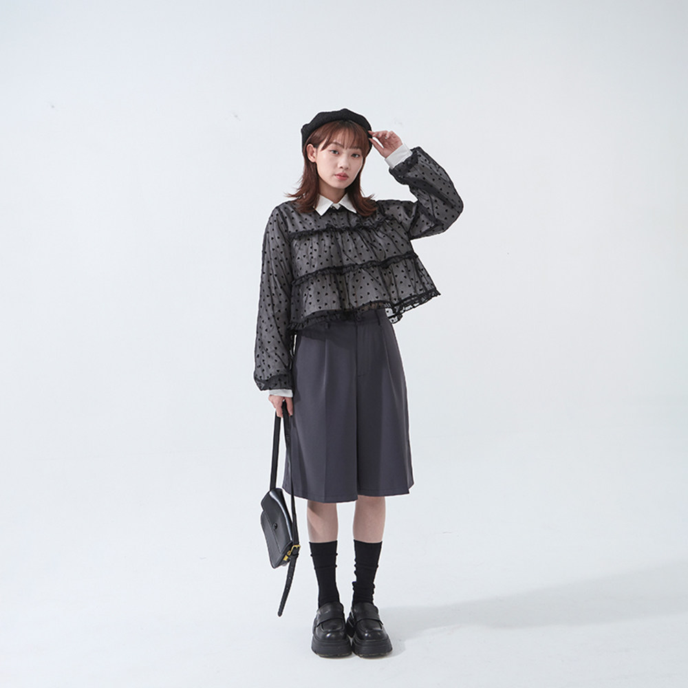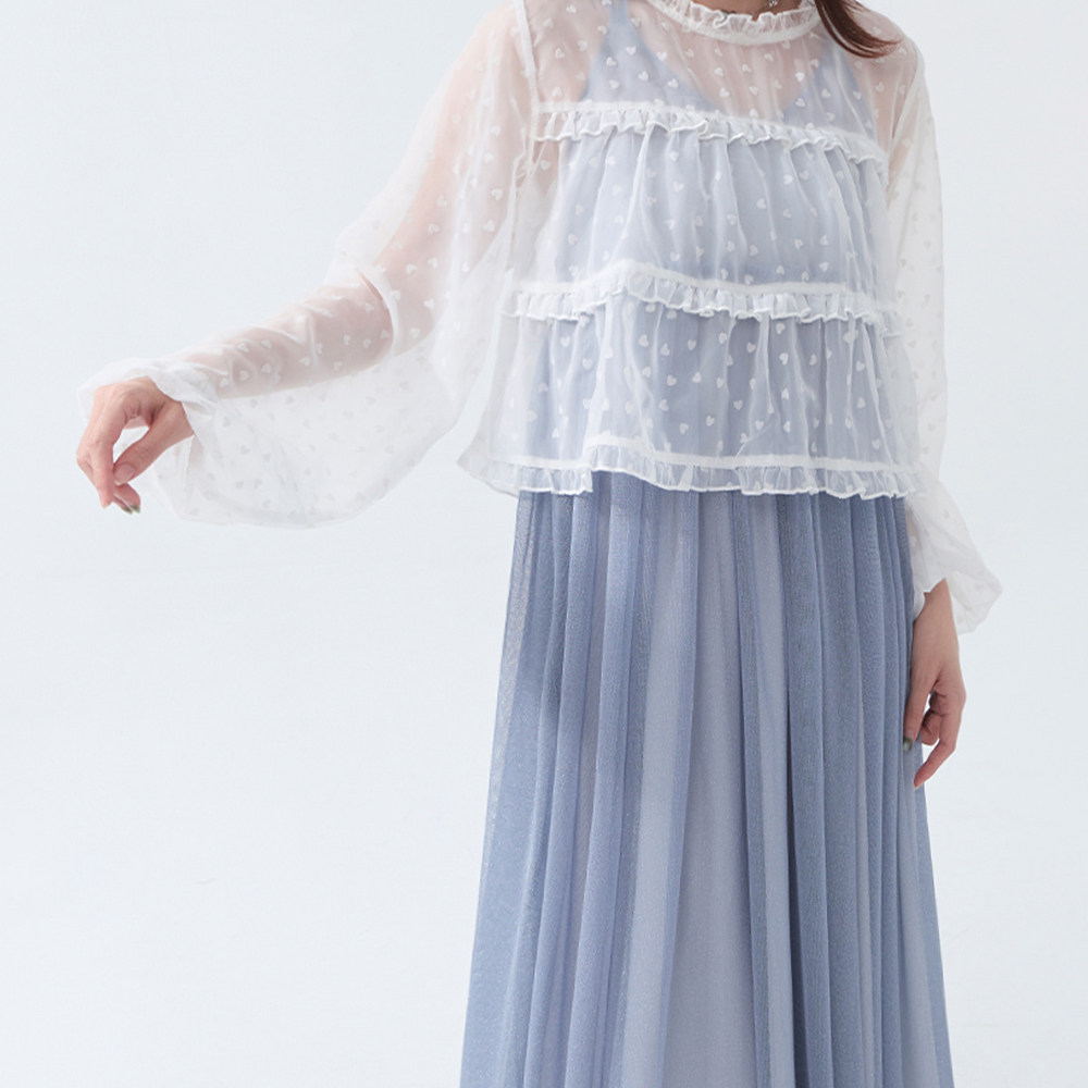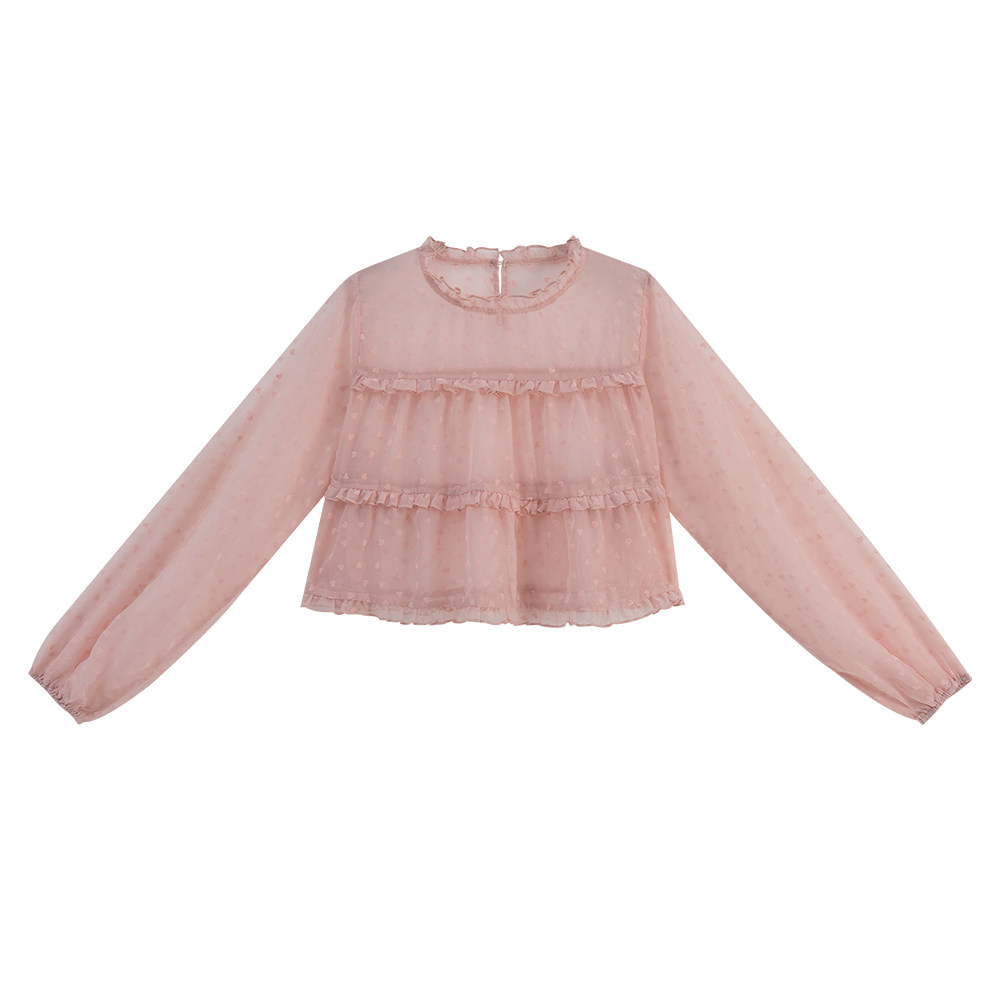 QUEENSHOP 2025秋冬新品女装立体爱心荷叶边透肤罩衫上衣01099163
