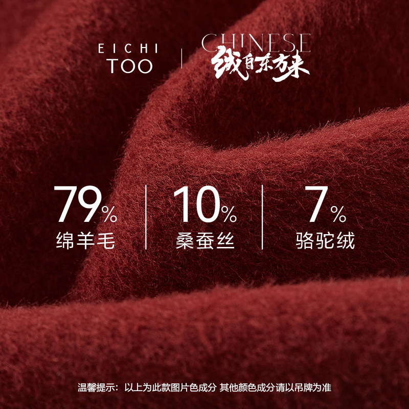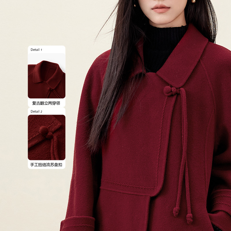爱居兔新中式双面呢大衣女冬季新款复古时尚安可拉红色外套