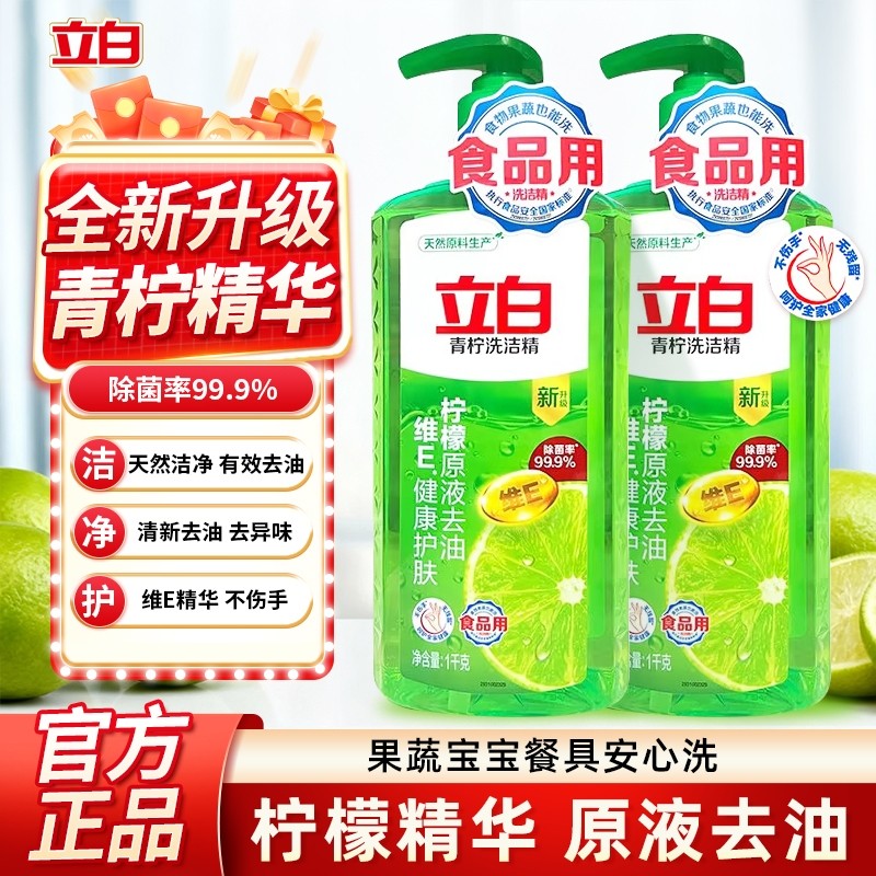 立白青柠洗洁精1kg维E精华不伤手A类食品用去果蔬洗碗液柠檬清洁