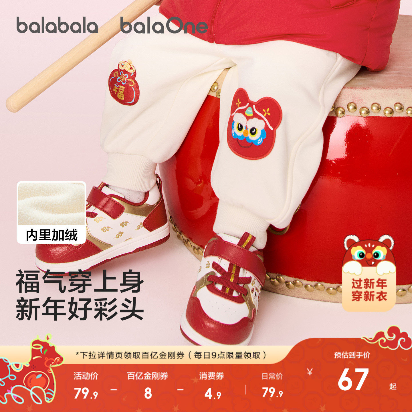 巴拉巴拉童装儿童加绒长裤男童2025冬装新款拜年服女童宝宝裤子红