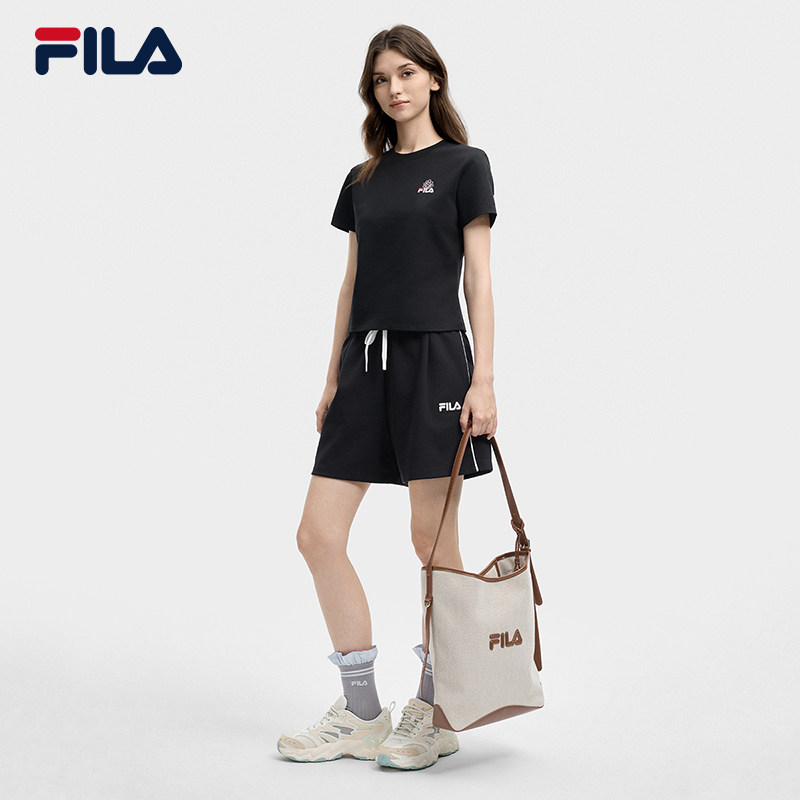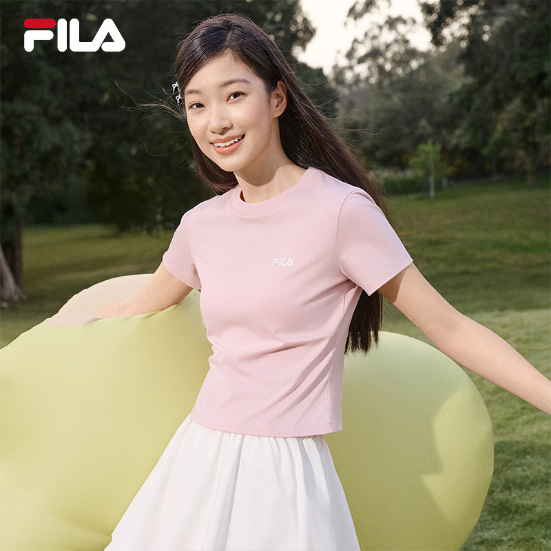 凉感FILA斐乐女辣妹T恤2026夏新款休闲修身短袖纯棉休闲短款上衣