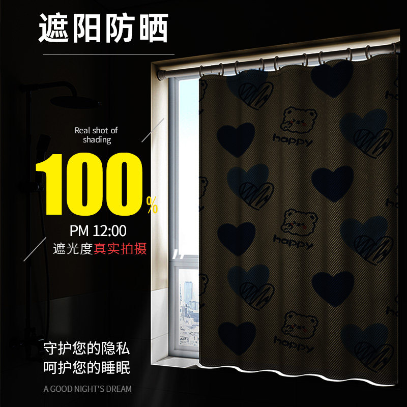 免打孔窗帘儿童房卡通遮挡帘学生挡光帘卧室遮阳帘门帘新遮光飘窗
