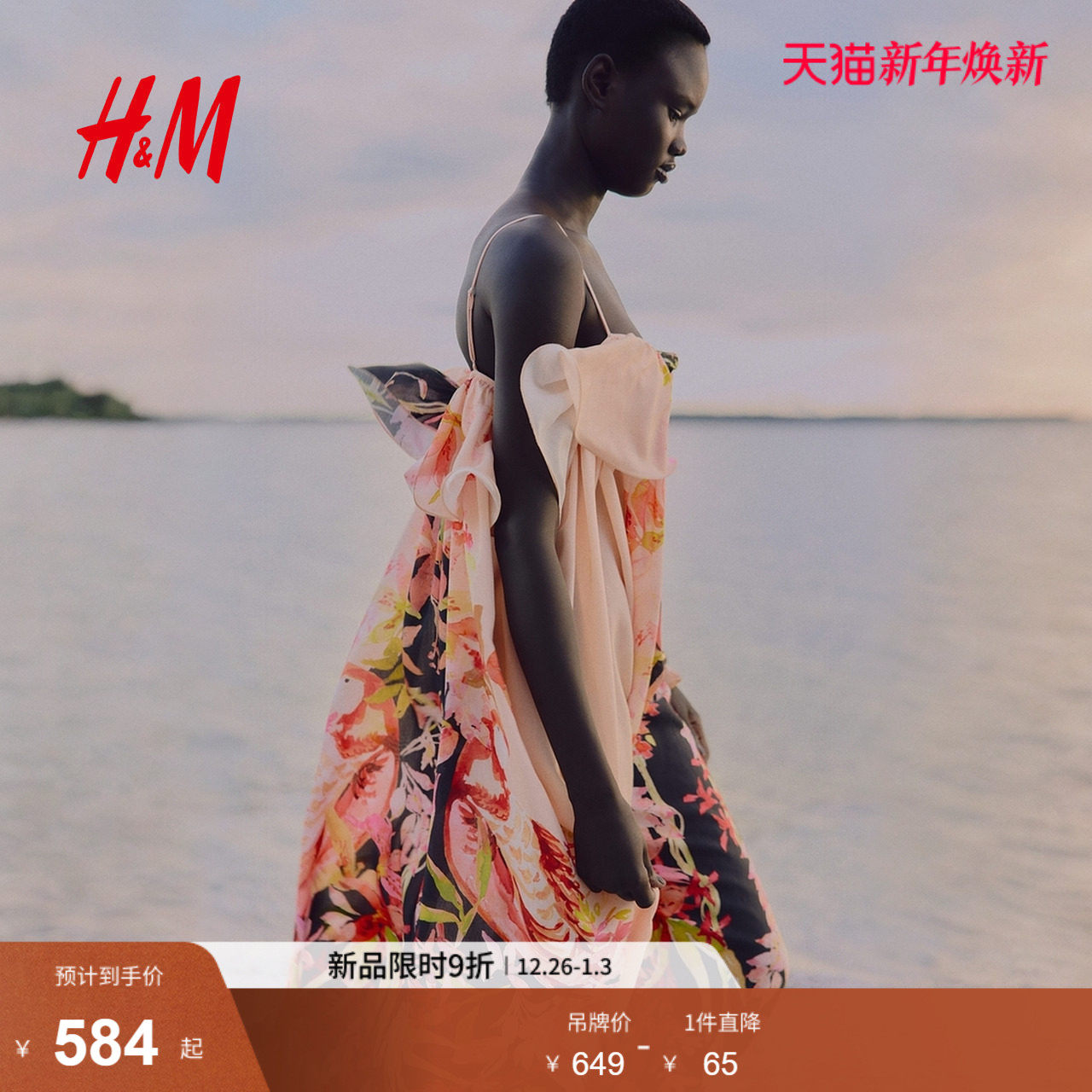 HM女士连衣裙2025年冬季新款荷叶边吊带连衣裙1298080
