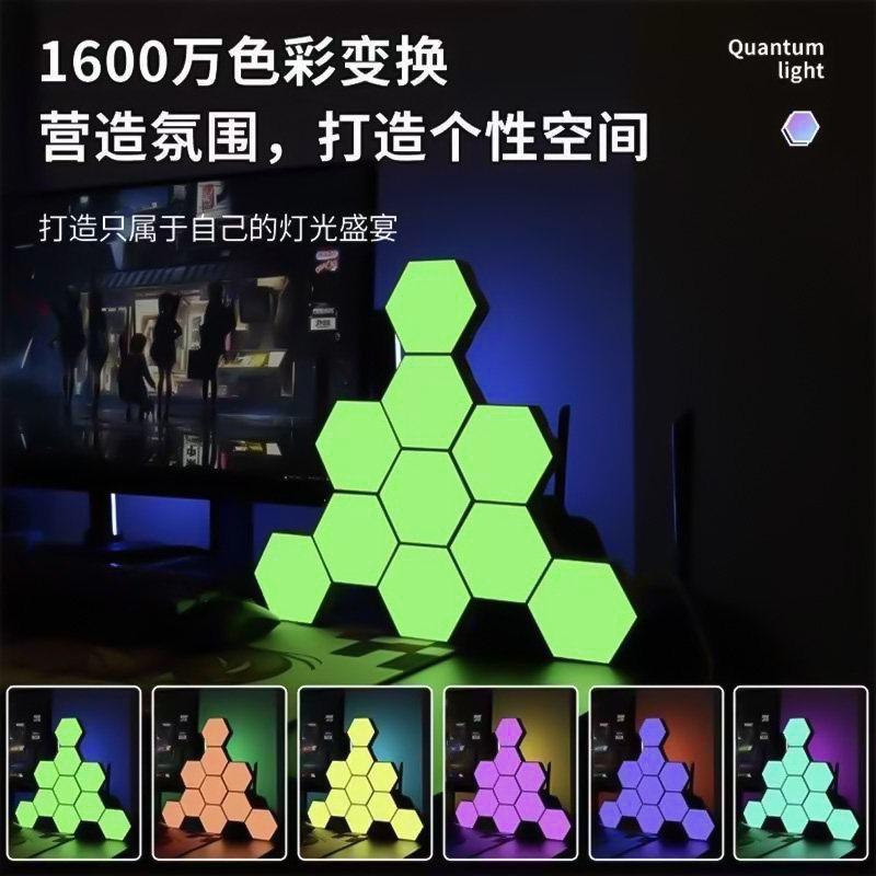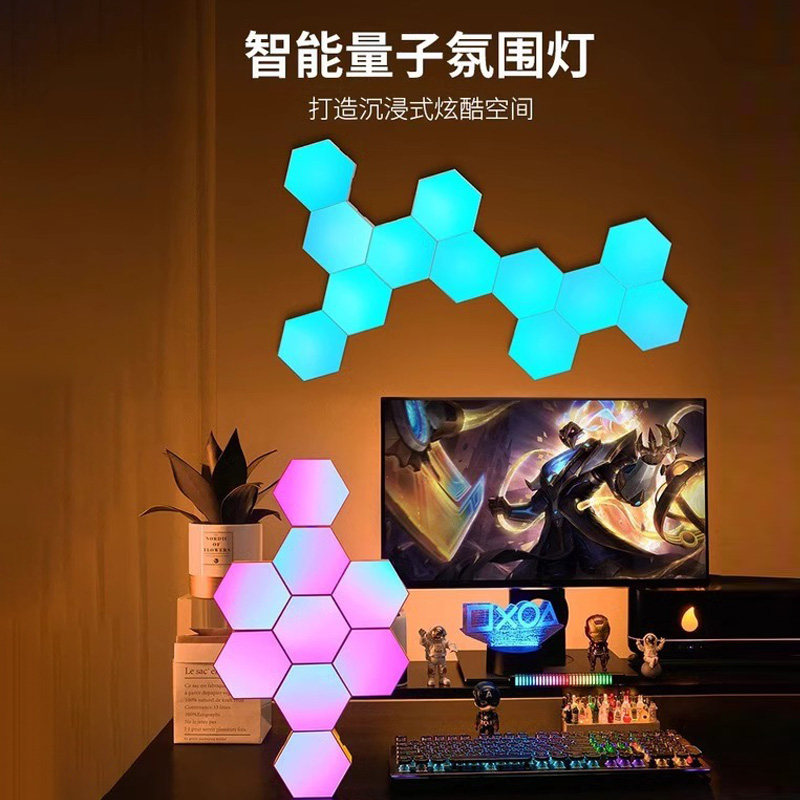 电竞房氛围灯智能RGB量子灯奇光板声控蜂窝壁灯夜灯拾音卧室灯光