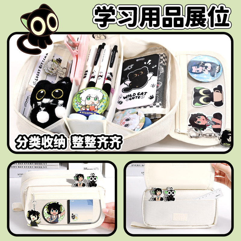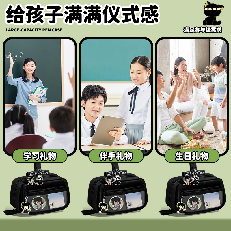 罗小黑笔袋文具盒男孩款铅笔盒高颜值透明文具袋男生2025新款超火小学生简约大容量小众不撞款儿童铅笔袋女孩