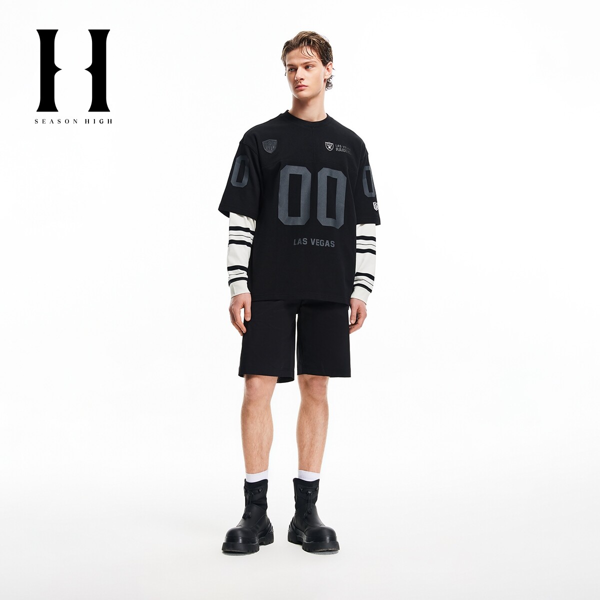 SEASON HIGH春季NFL联名常规休闲短裤男装潮徽章刺绣装饰双侧插袋
