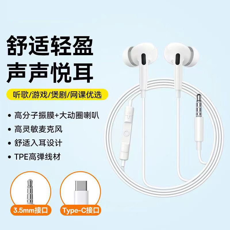 重低音耳机有线入耳式type-c接口高音质降噪游戏手机平板电脑圆口