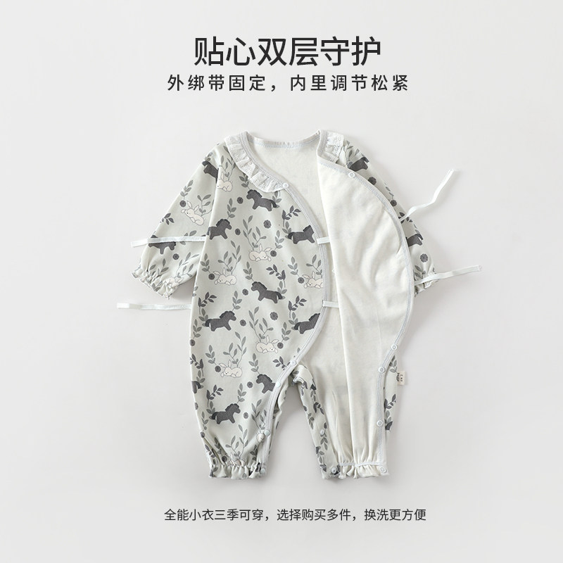 婴儿无骨春秋冬装连体衣新生儿纯棉宝宝衣服爬服哈衣爬行服系带