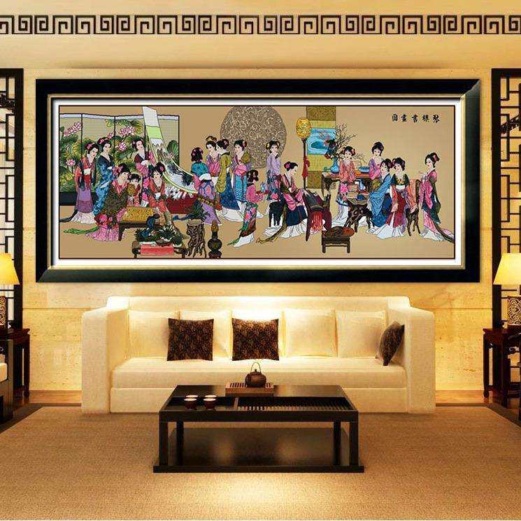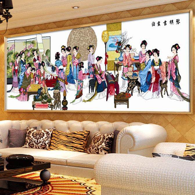 十字绣2023新款客厅大幅琴棋书画十八钗美女图线绣自己绣非成品