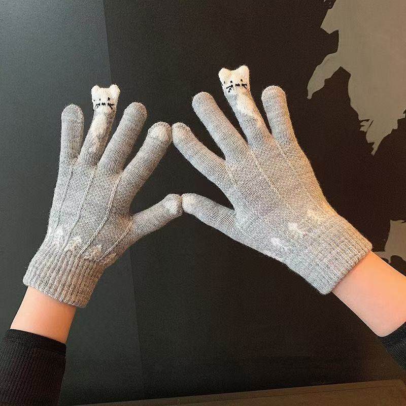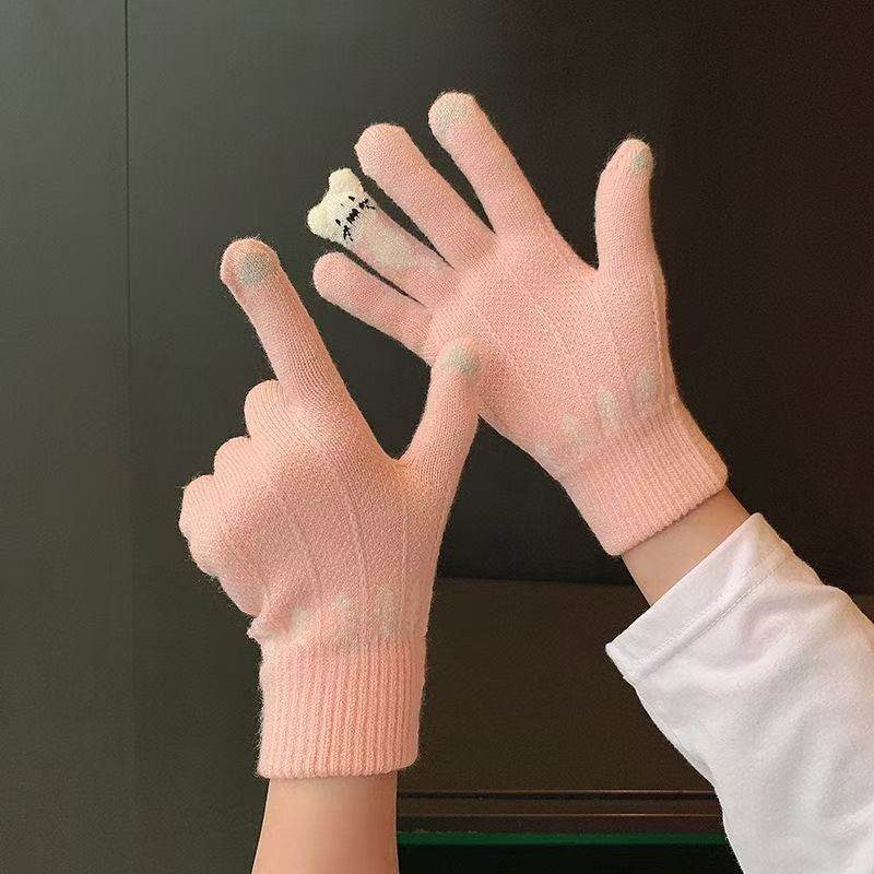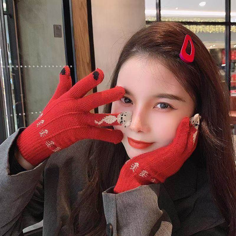 韩版猫咪手套冬季女生红色分指保暖学生骑行可触屏御寒手套可爱