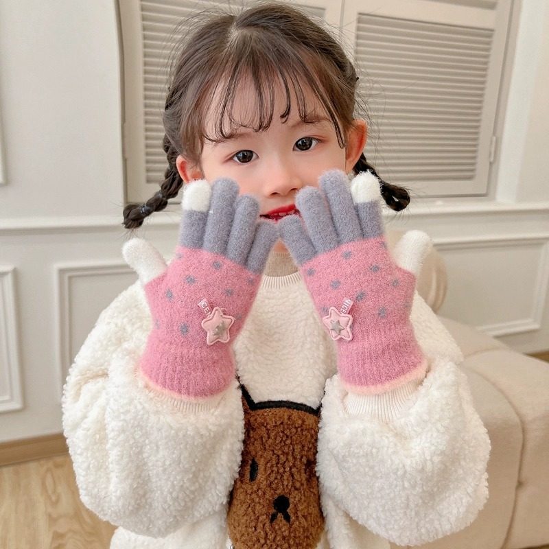 儿童手套冬天加绒保暖男童五指分指毛绒宝宝秋冬季上学小男孩写字