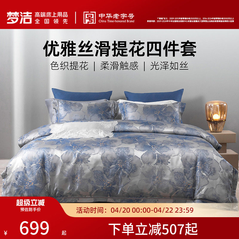 梦洁床上四件套高精密提花全棉纯棉高端轻奢床单被套床品2026新款
