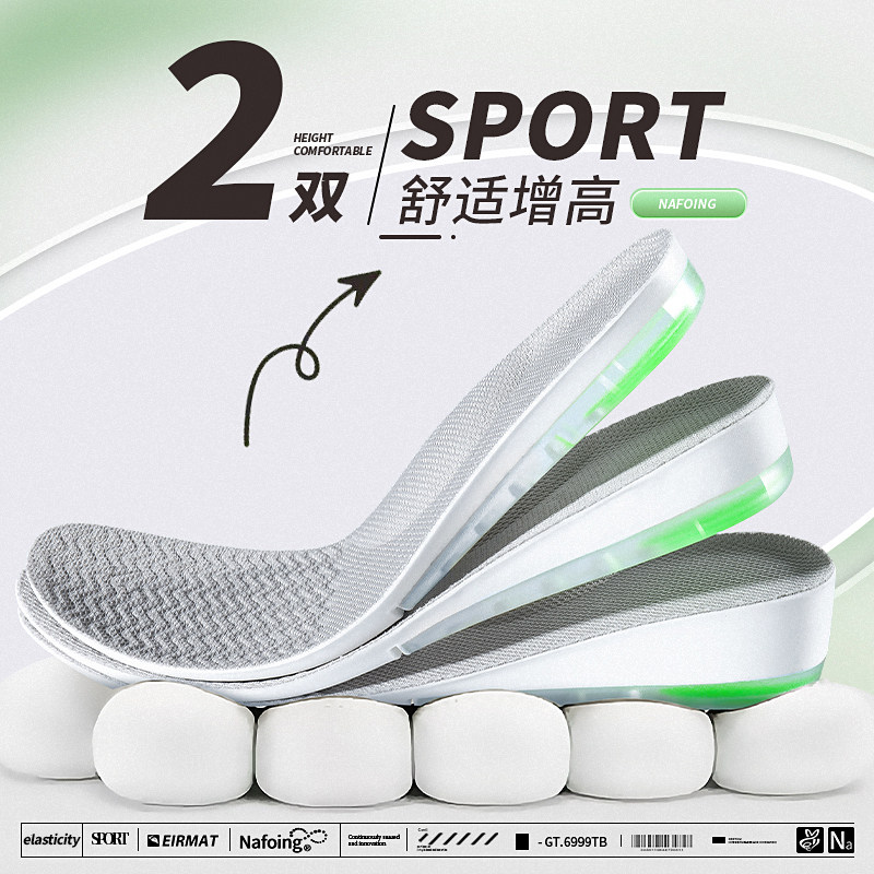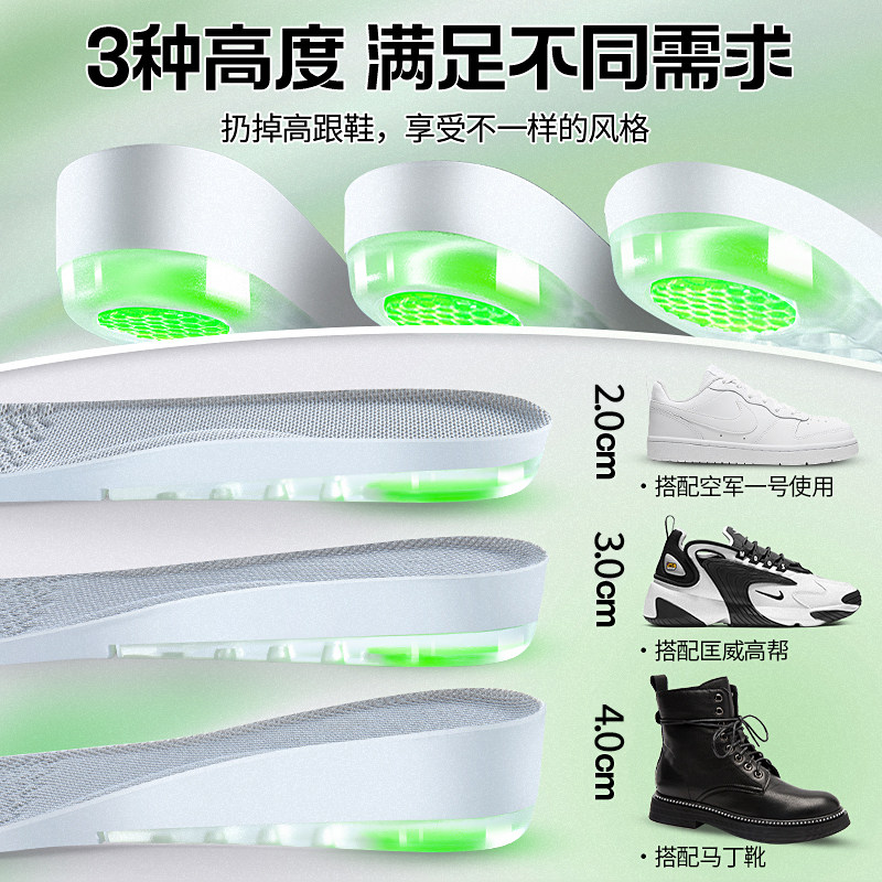 ZOOM气垫内增高鞋垫男女爆米运动减震吸汗足弓支撑不累脚高弹透气