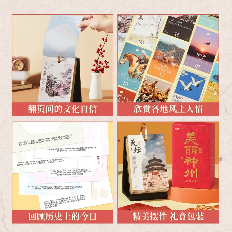 言仓美丽神州2026日历台历新款实用人文文化创意新年圣诞生日礼物