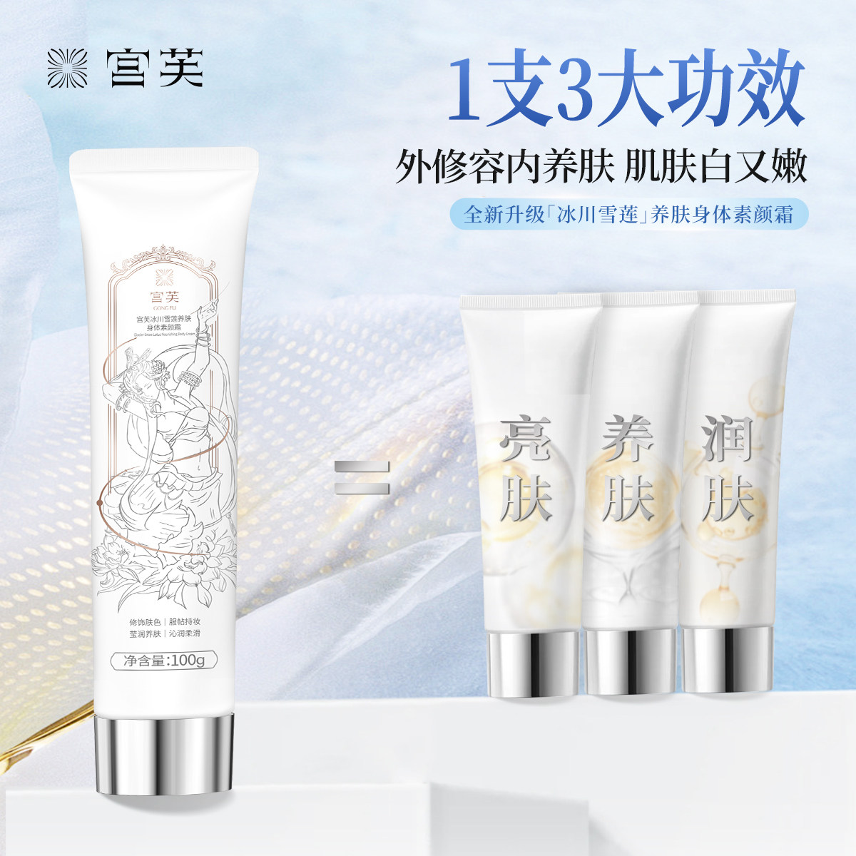 宫芙第四代冰川雪莲养肤身体素颜霜焕亮不假白