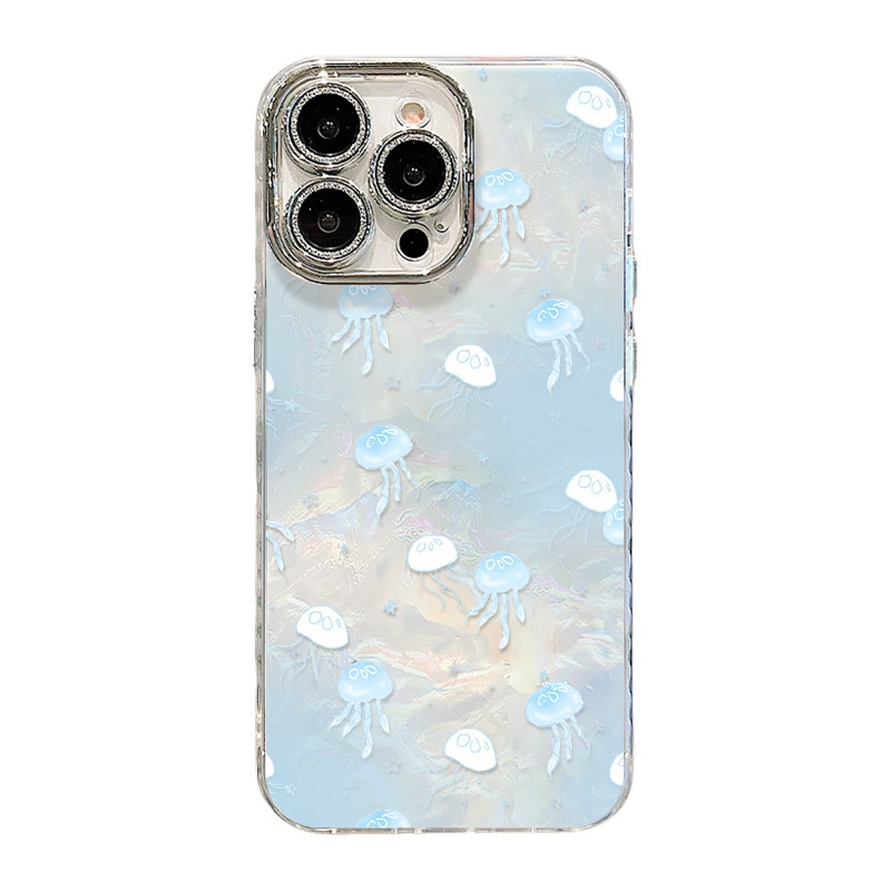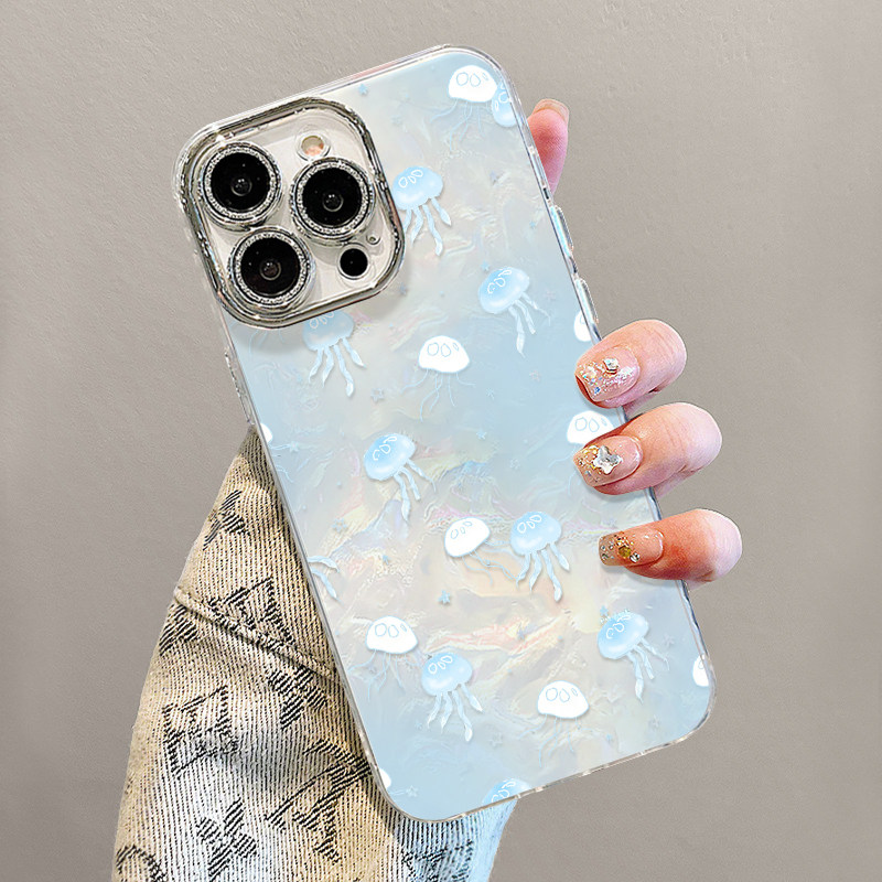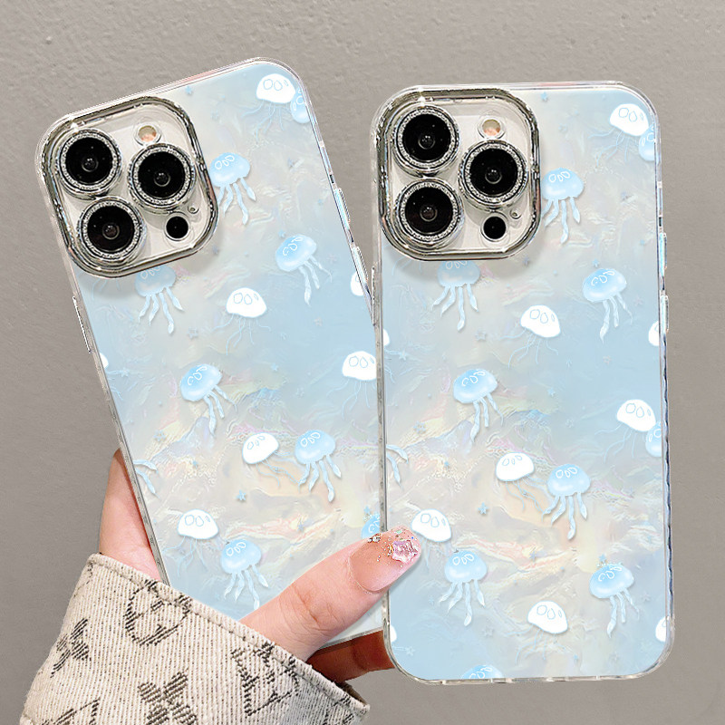 深海水母适用苹果17ProMax手机壳iPhone16Pro贝壳纹15Plus新款14蓝色系13小清新12女款带手链air轻奢高级感套