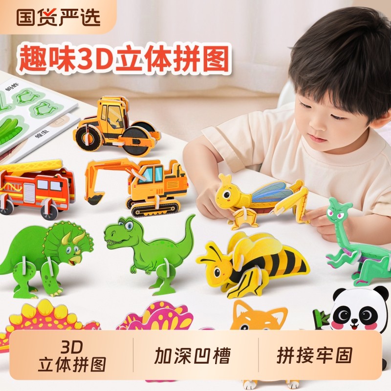 3D趣味昆虫立体拼图儿童创意DIY玩具幼儿园早教手工拼装益智卡片