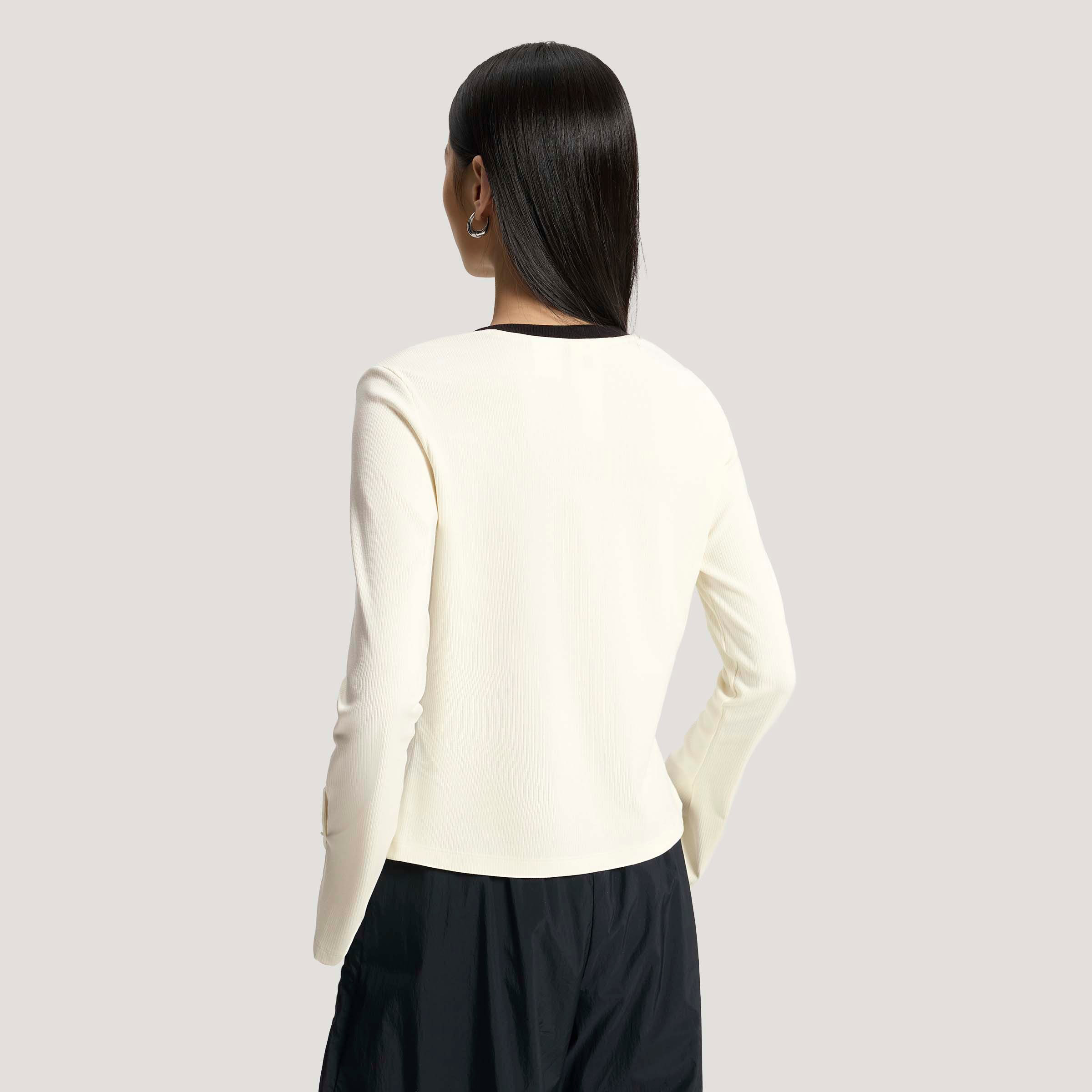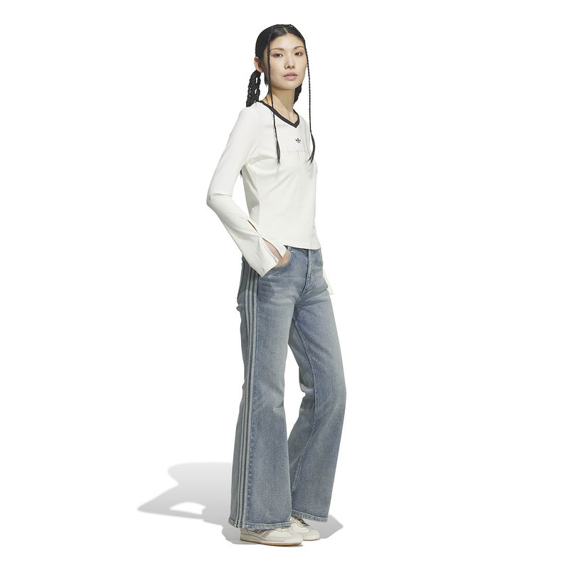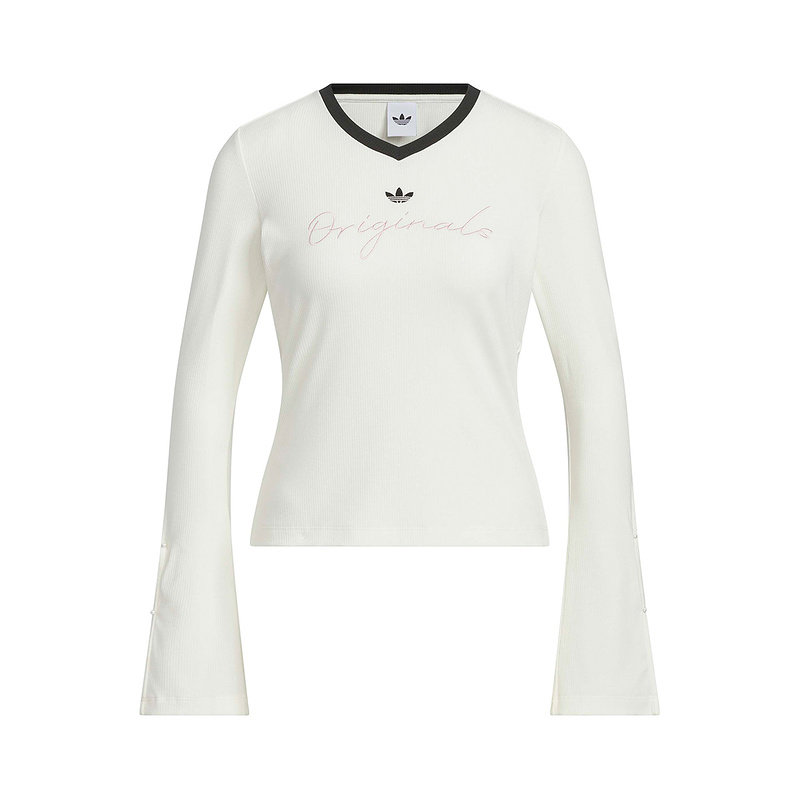 adidas阿迪达斯三叶草V领运动衫2026春女针织罗纹长袖T恤 KS2382