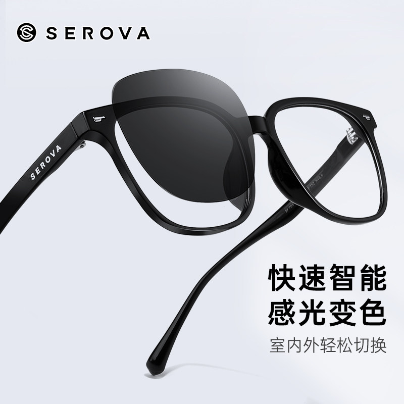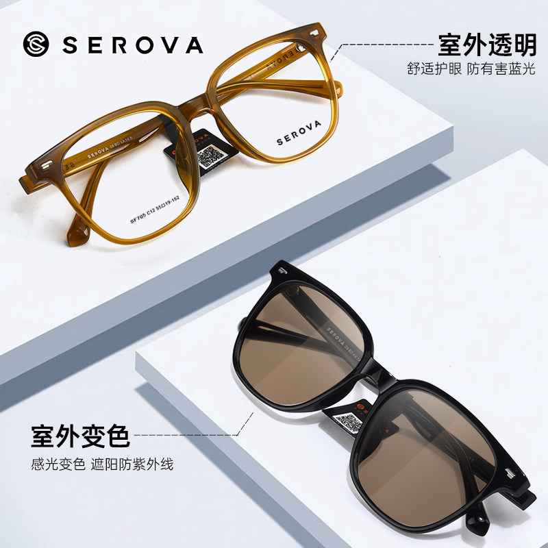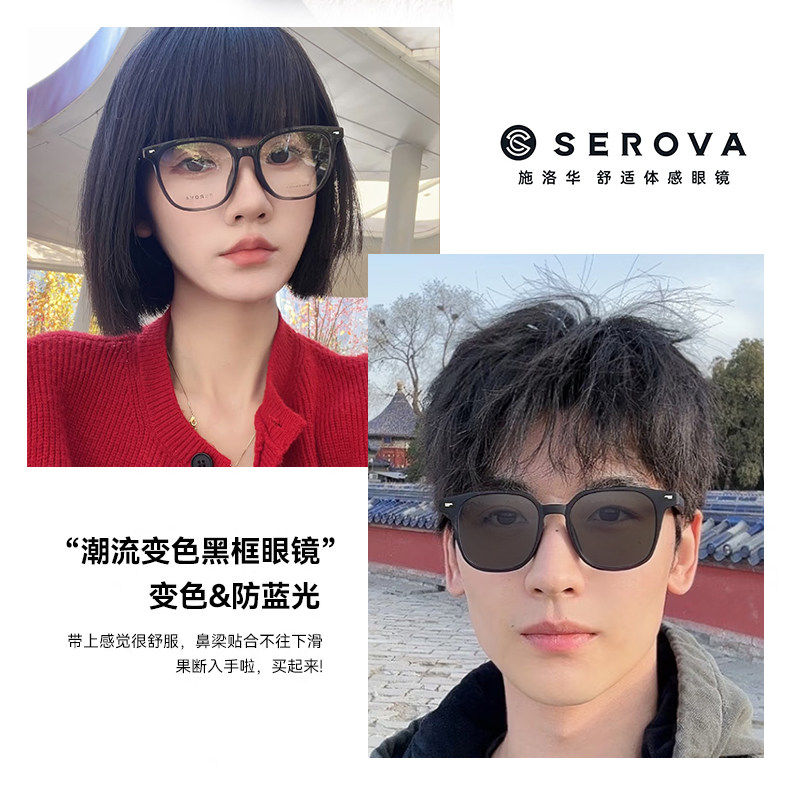 施洛华变色近视眼镜变茶灰可配度数大框显瘦黑色定制镜片男SF705