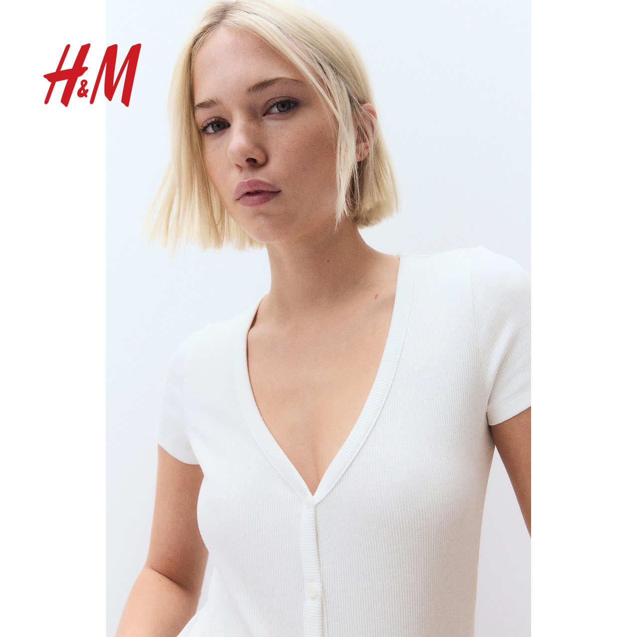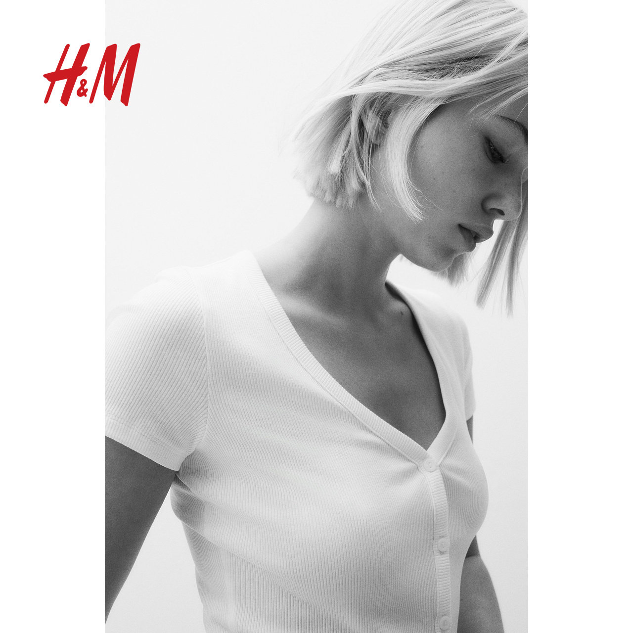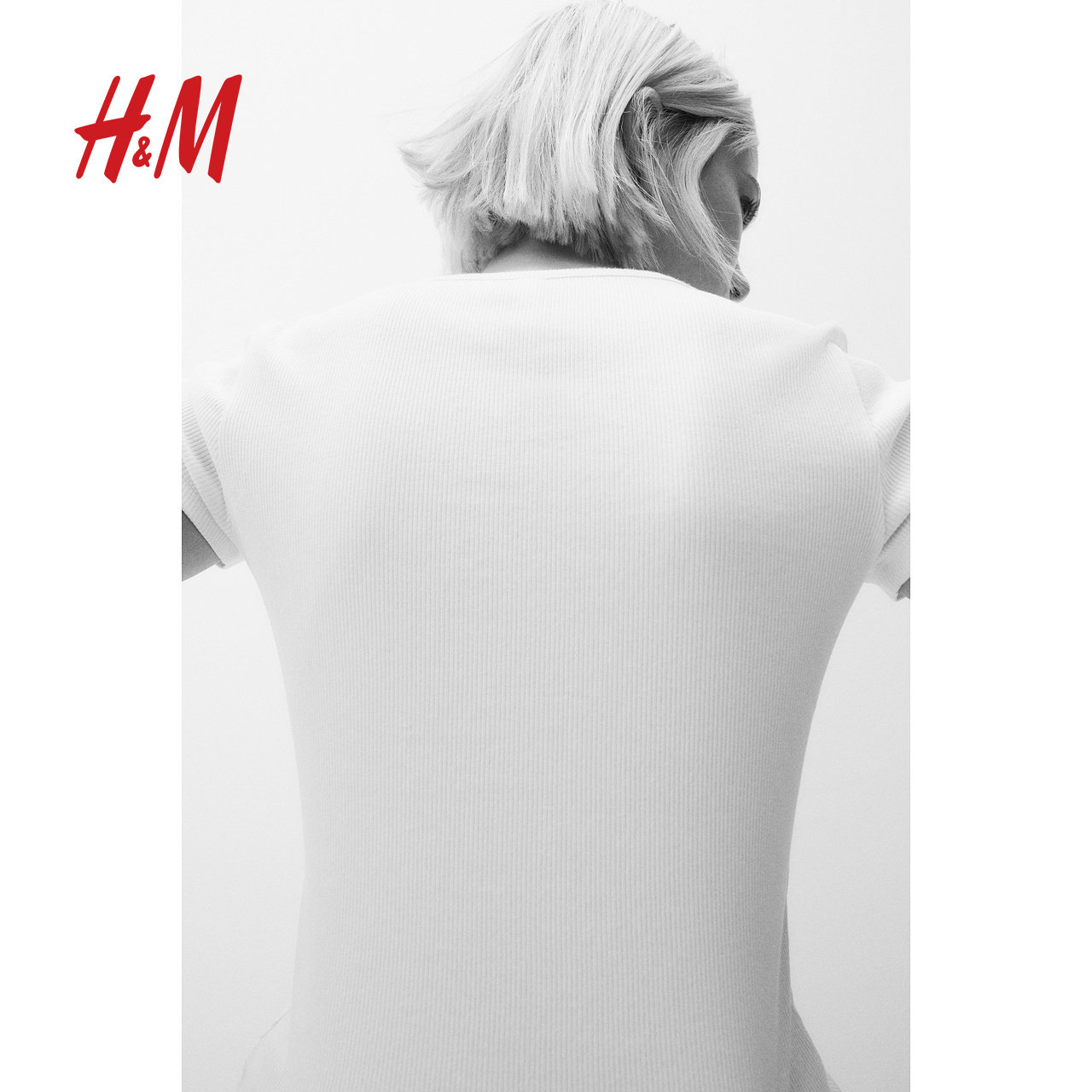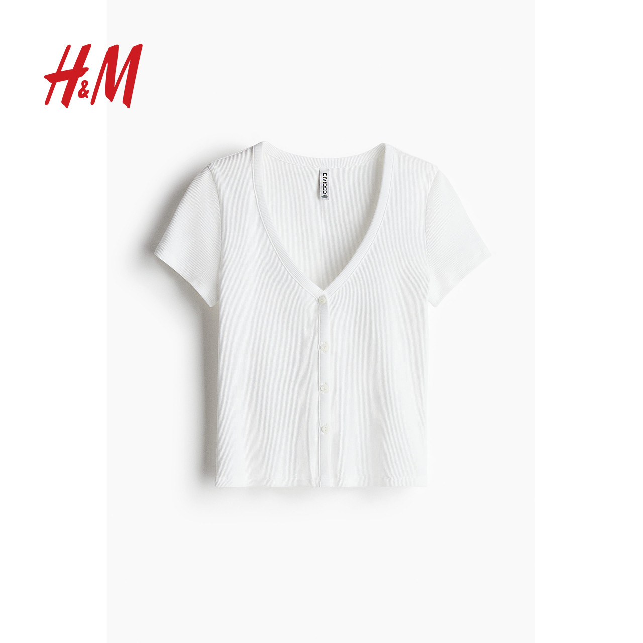 HM2025年冬季新款女装合身罗纹棉质针织 T 恤1276117
