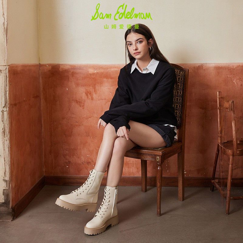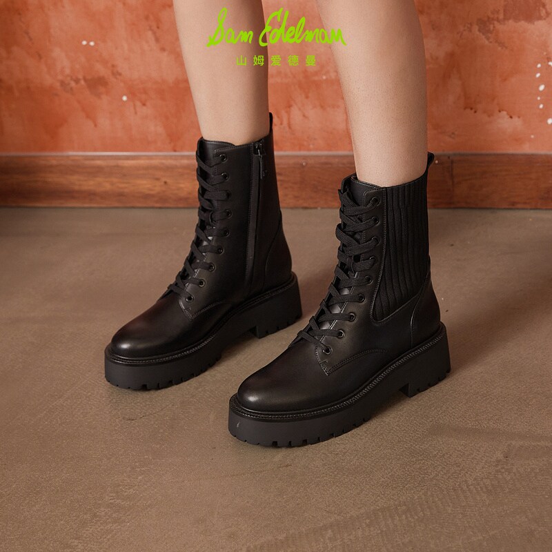 SAM EDELMAN山姆爱德曼冬季黑时尚圆头马丁靴拉链牛皮短靴女EVINA