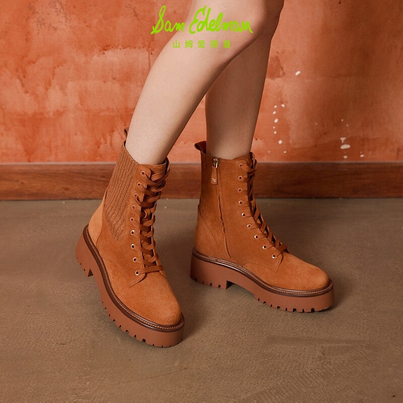 星期六英伦风复古马丁靴女厚底2025冬季巨好看加绒女鞋子中筒棉靴