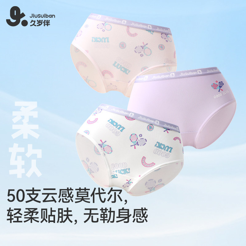 久岁伴女童三角内裤秋冬新品儿童不卷边护肚底裤6条装中大童裤头