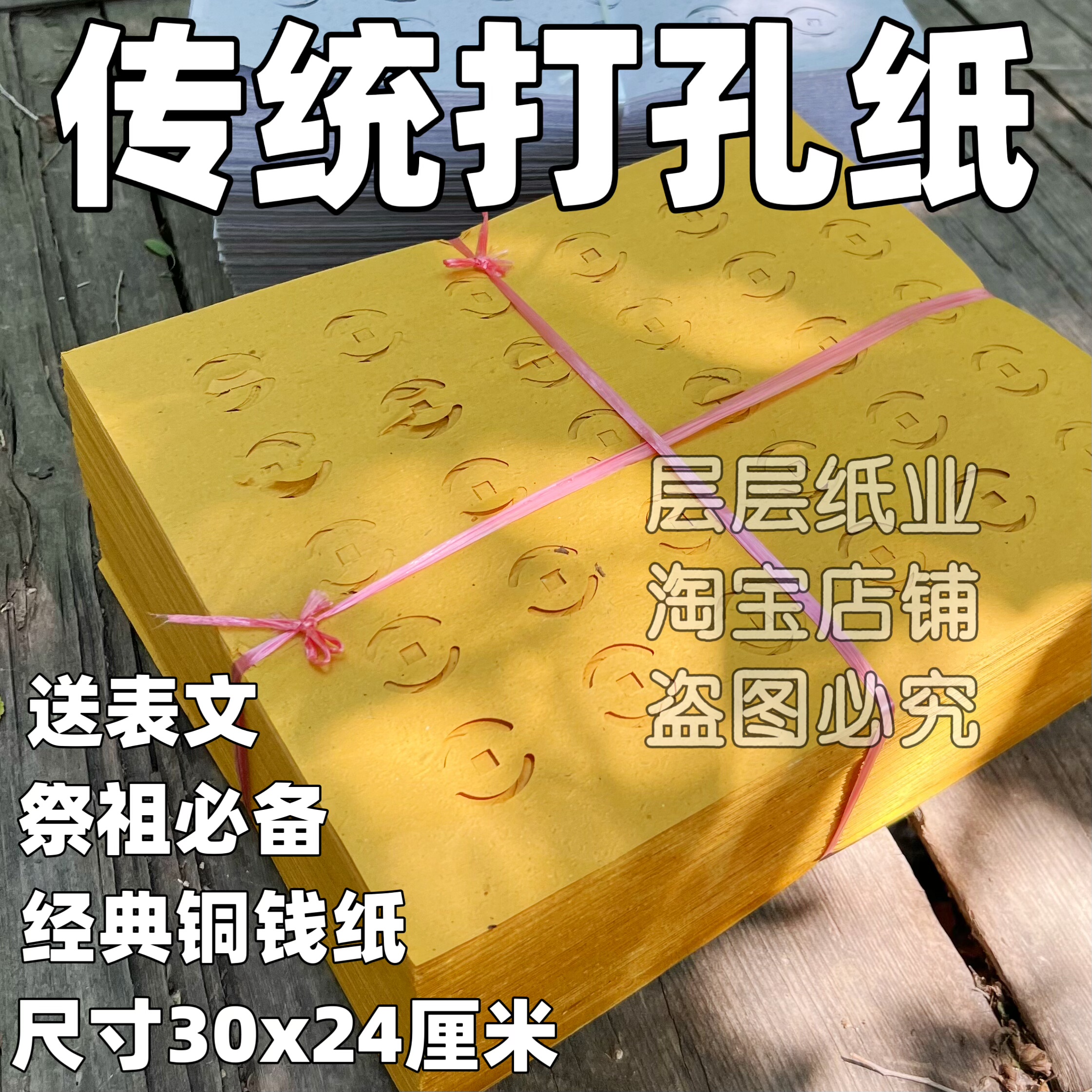 传统打孔纸铜钱纸黄白钱黄草纸麻钱纸周年烧打眼铜钱纸打眼纸清明