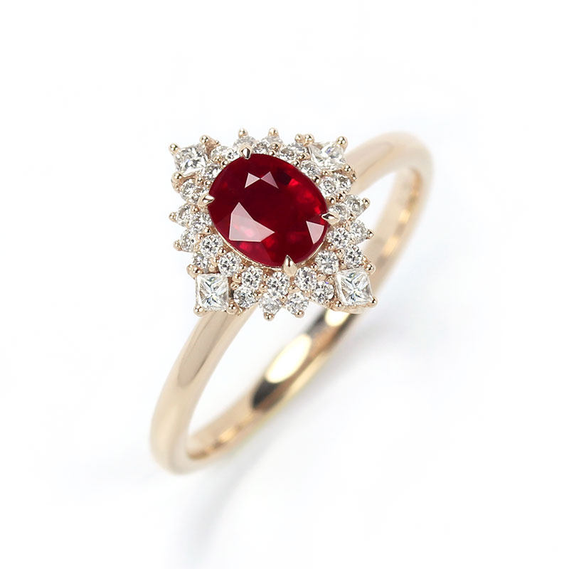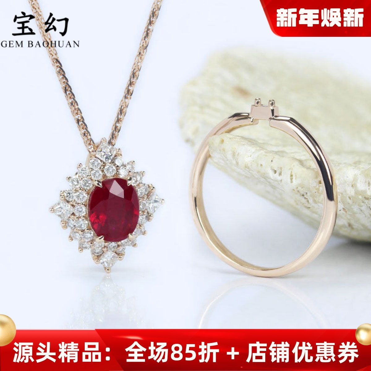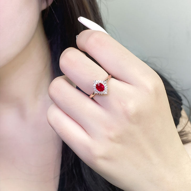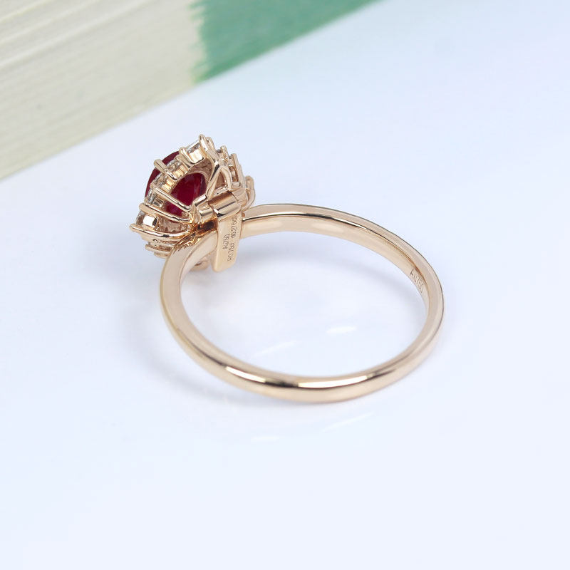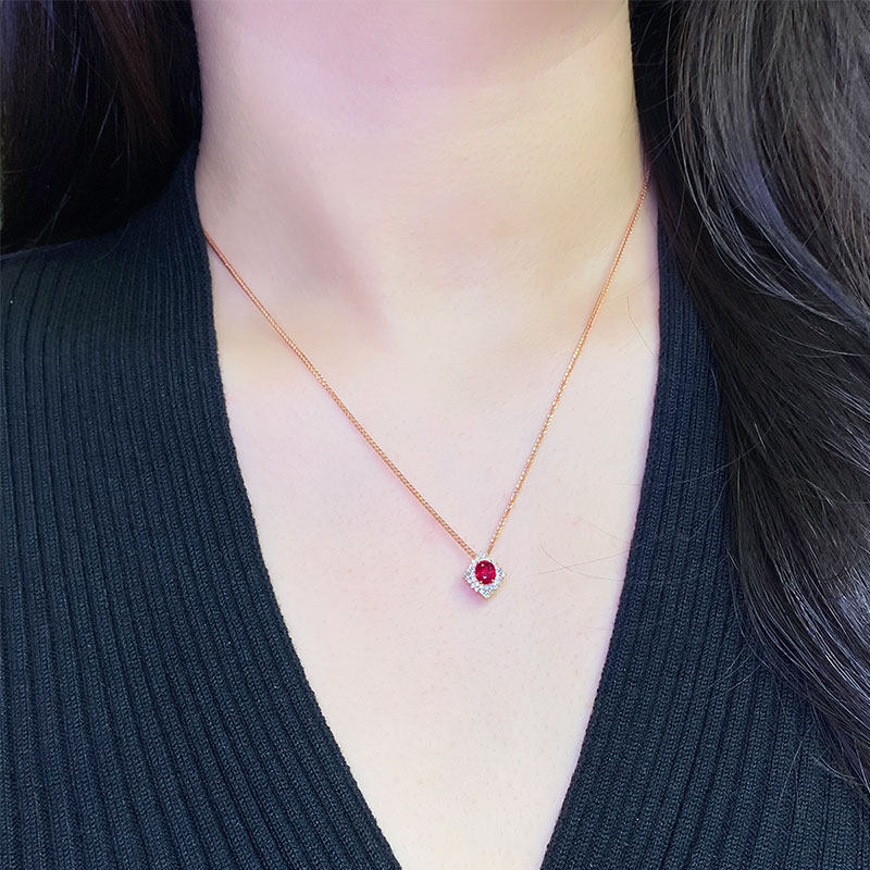G18K玫瑰金缅甸天然鸽血红宝石戒指两用款 天然钻石吊坠项链女款