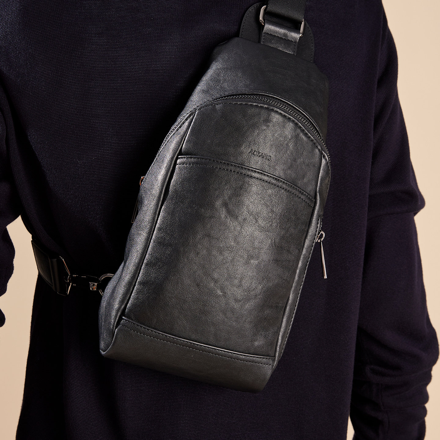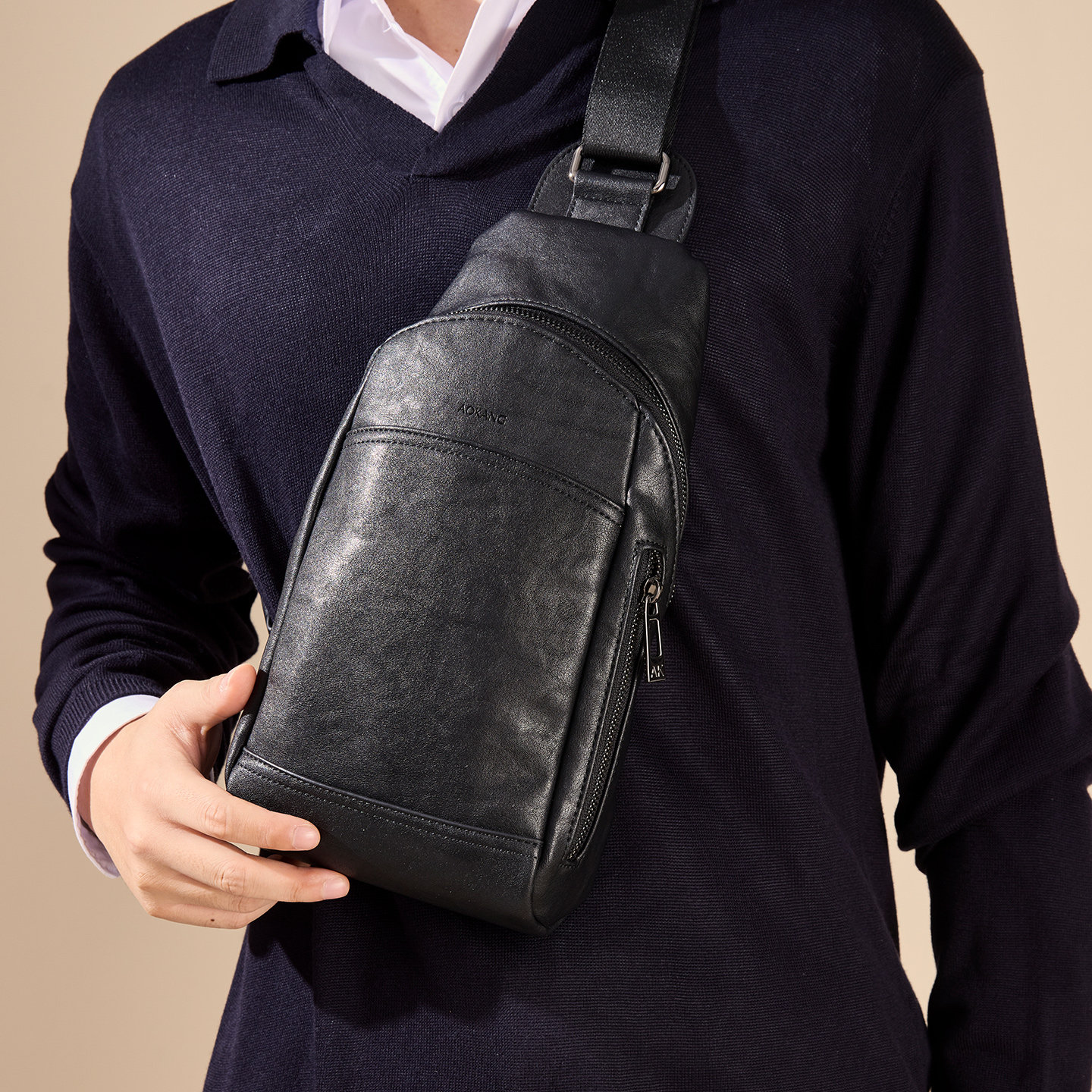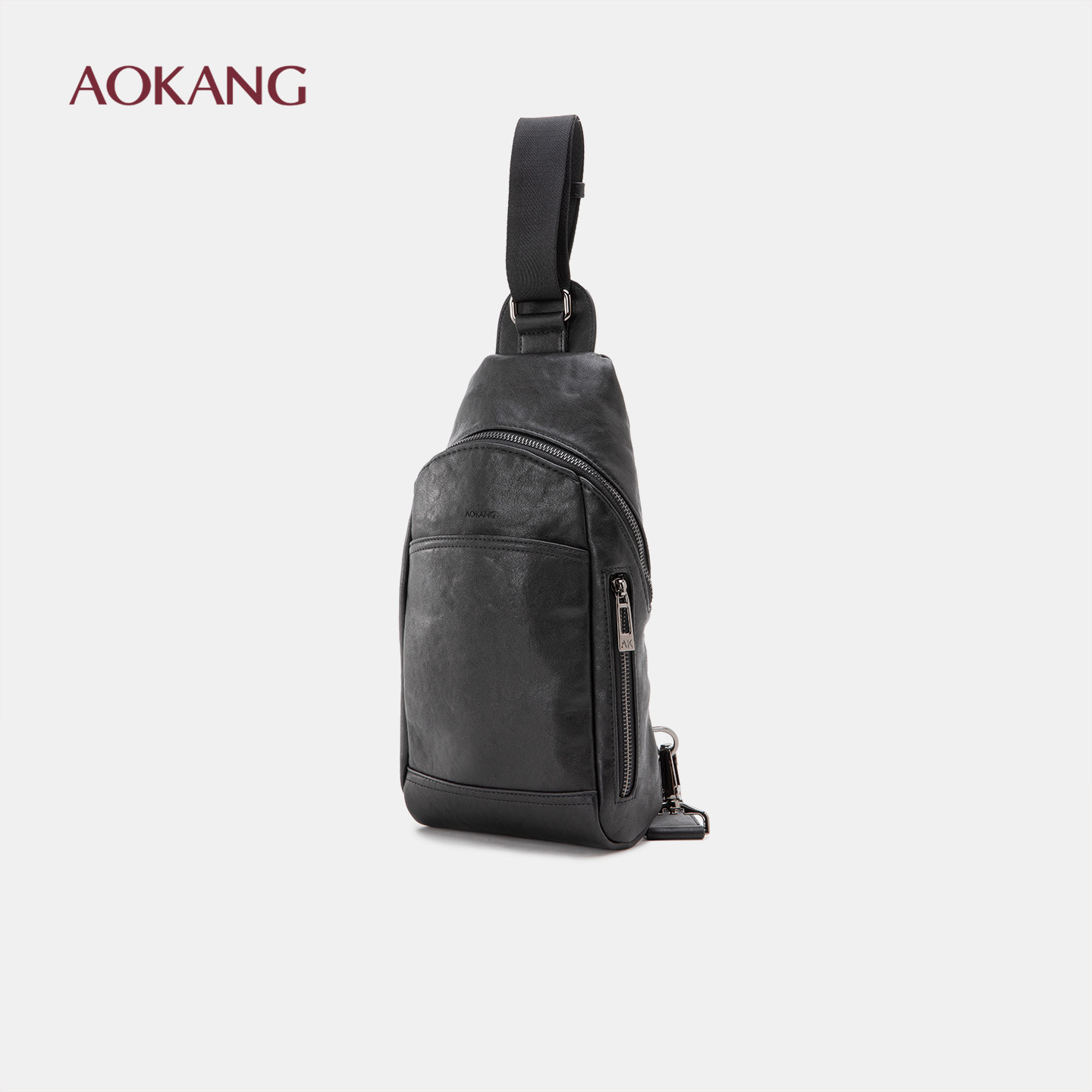 奥康 男士胸包黑色商务大容量斜挎包时尚简约男士休闲单肩